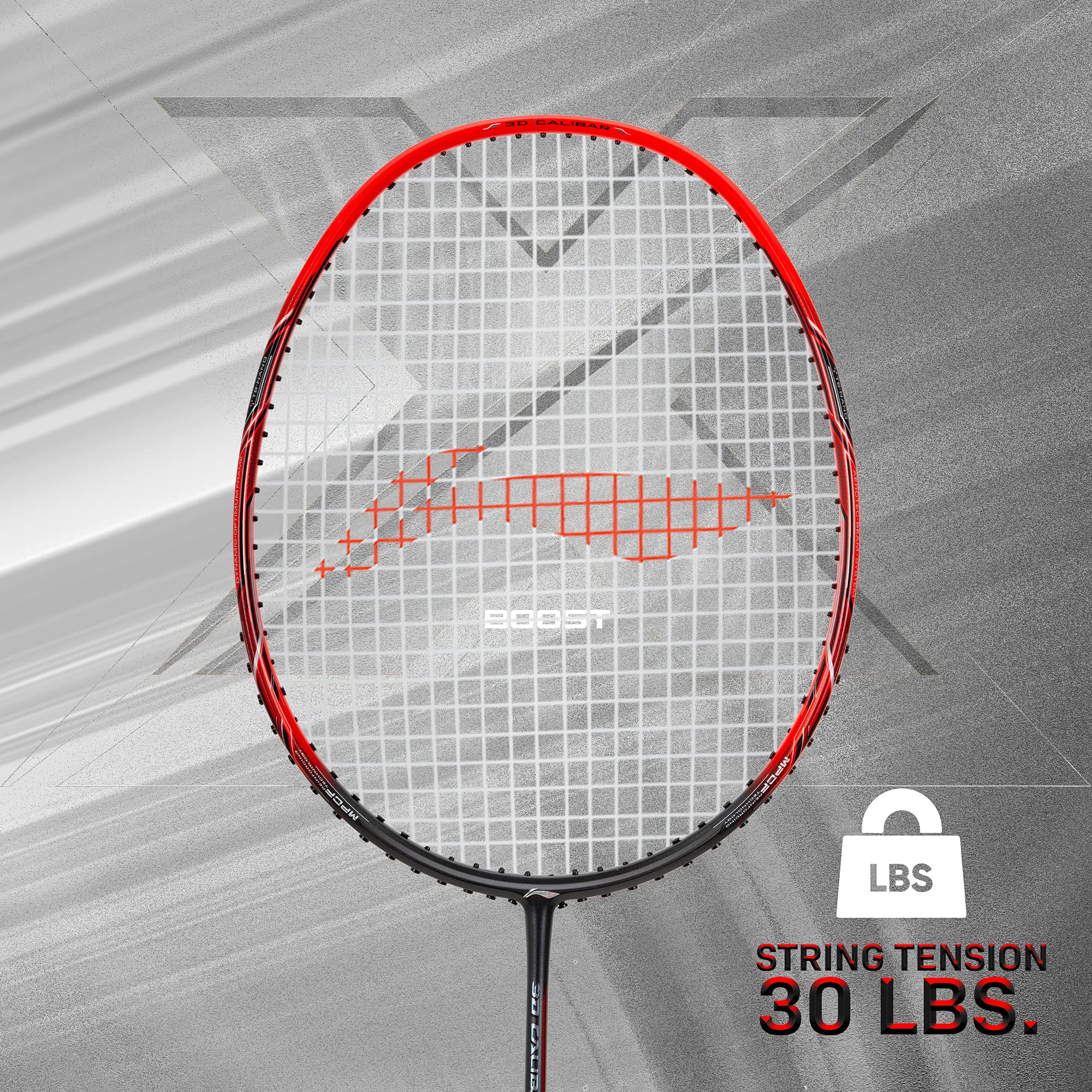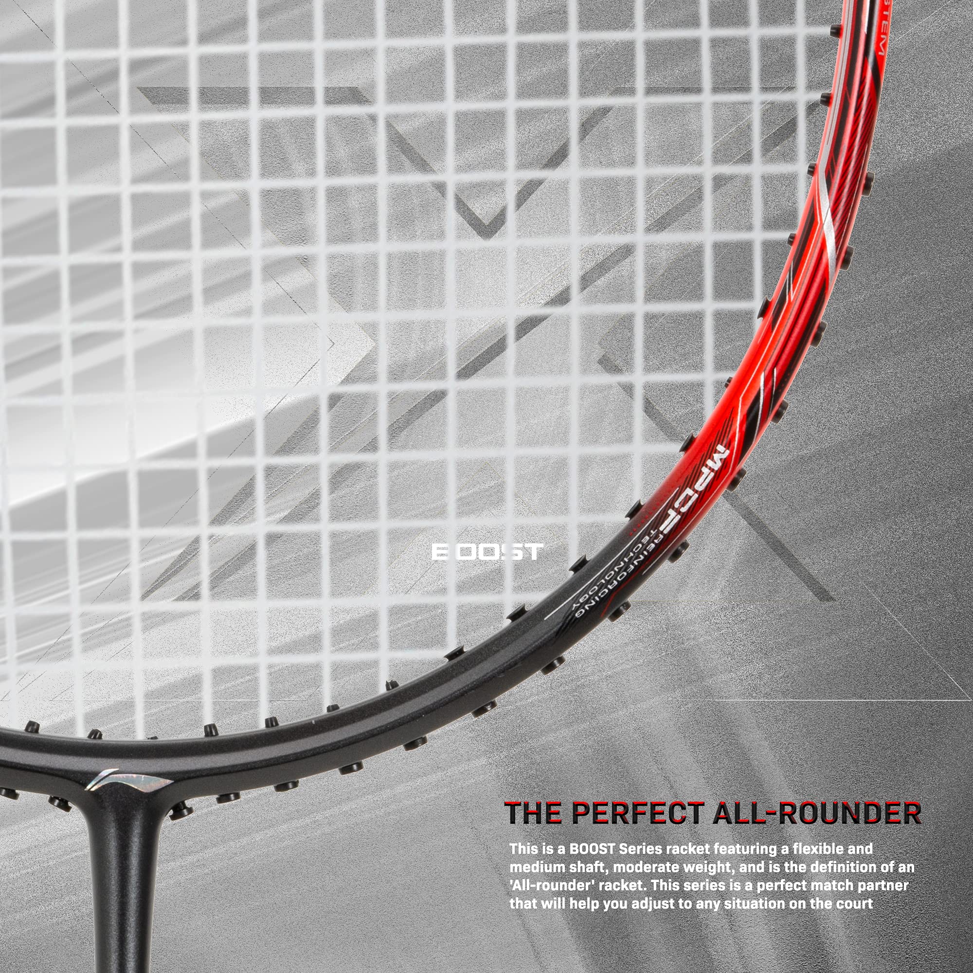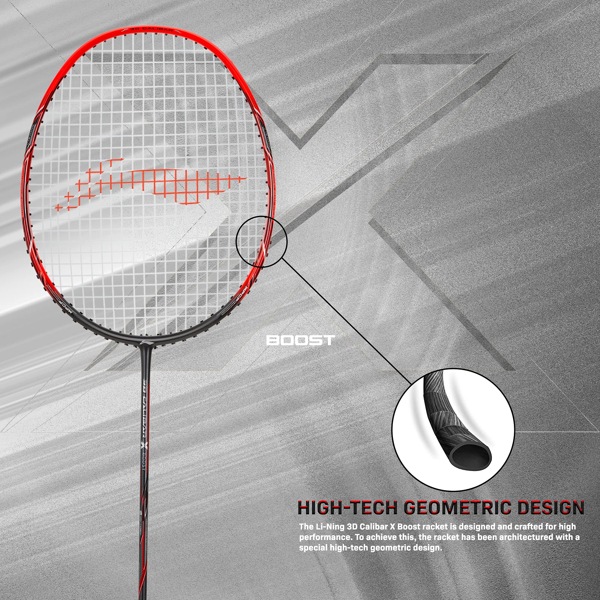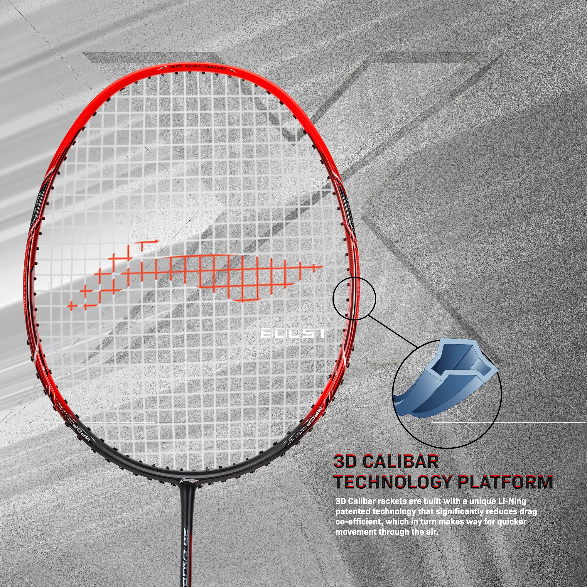 The Li-Ning 3D Calibar X Boost badminton uses the 3D Calibar Technology and features a high-tech geometric frame design that greatly reduces air resistance. It provides you with higher swing speeds for stronger smashes and best-suits players who rely on peak power in their gameplay. The racket has been engineered to perfection by devising TB Nano Aerotec Beam System MPCF Reinforcing technologies. This is a BOOST Series racket featuring a flexible and medium shaft moderate weight and is the definition of an 'All-rounder' racket. This series is a perfect match partner that will help you adjust to any situation on the court.