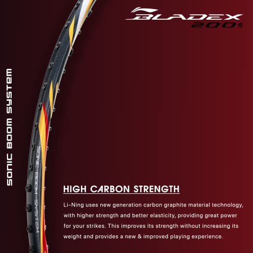The Li-Ning Blade X 200 is a pioneering racket of the Rex speed series. Devised for striking supremacy it gives you refined speed & precision coupled with smooth swings. This new-age sonic boom frame technology and high carbon material optimization give the racket the cutting-edge eminence and add the top-line Li-Ning ammo to your game.