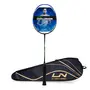 Li-Ning Challenger Boost Carbon Graphite Strung Badminton Racquet 84 Grams 30 Lbs String Tension and Free Full Cover (Black/Blue)