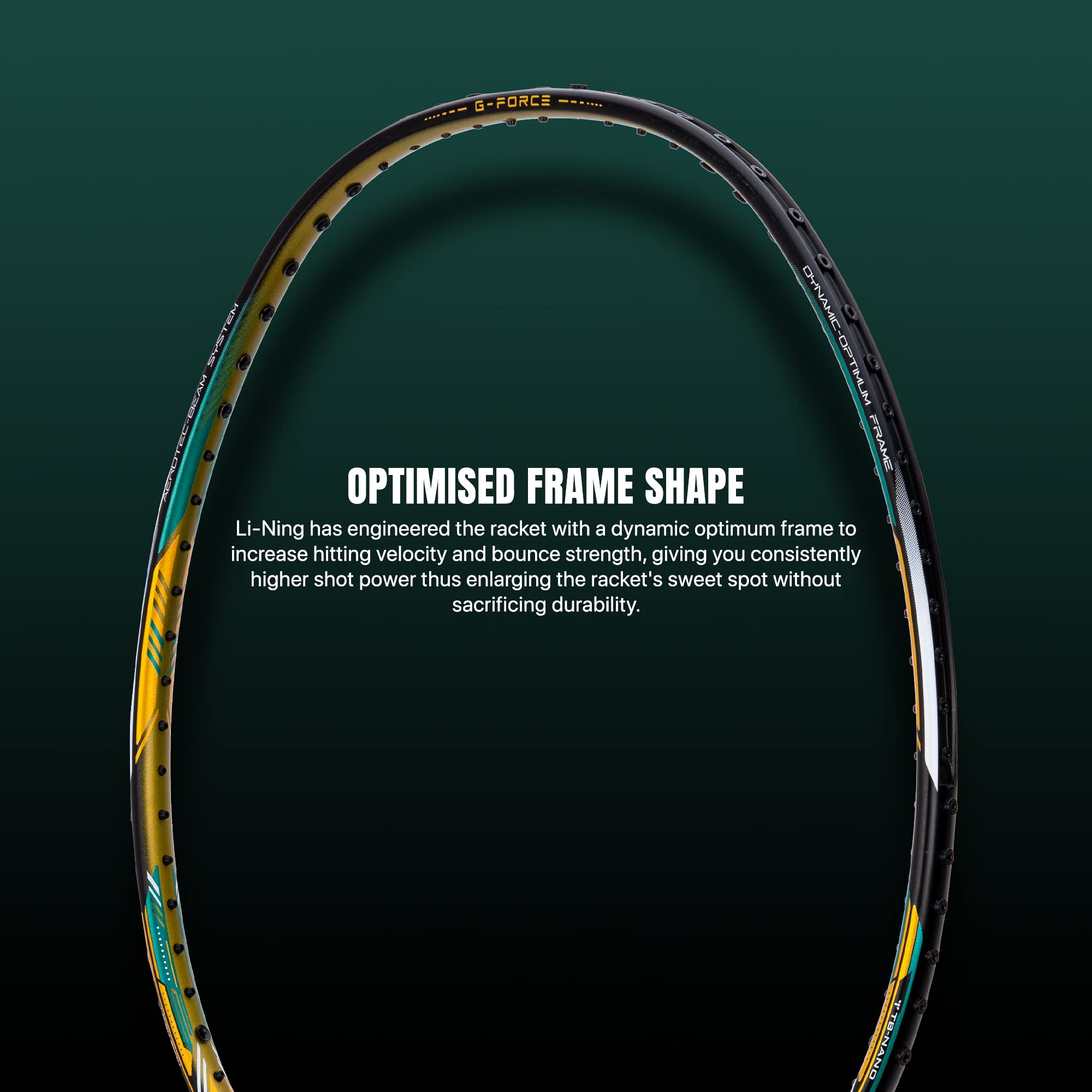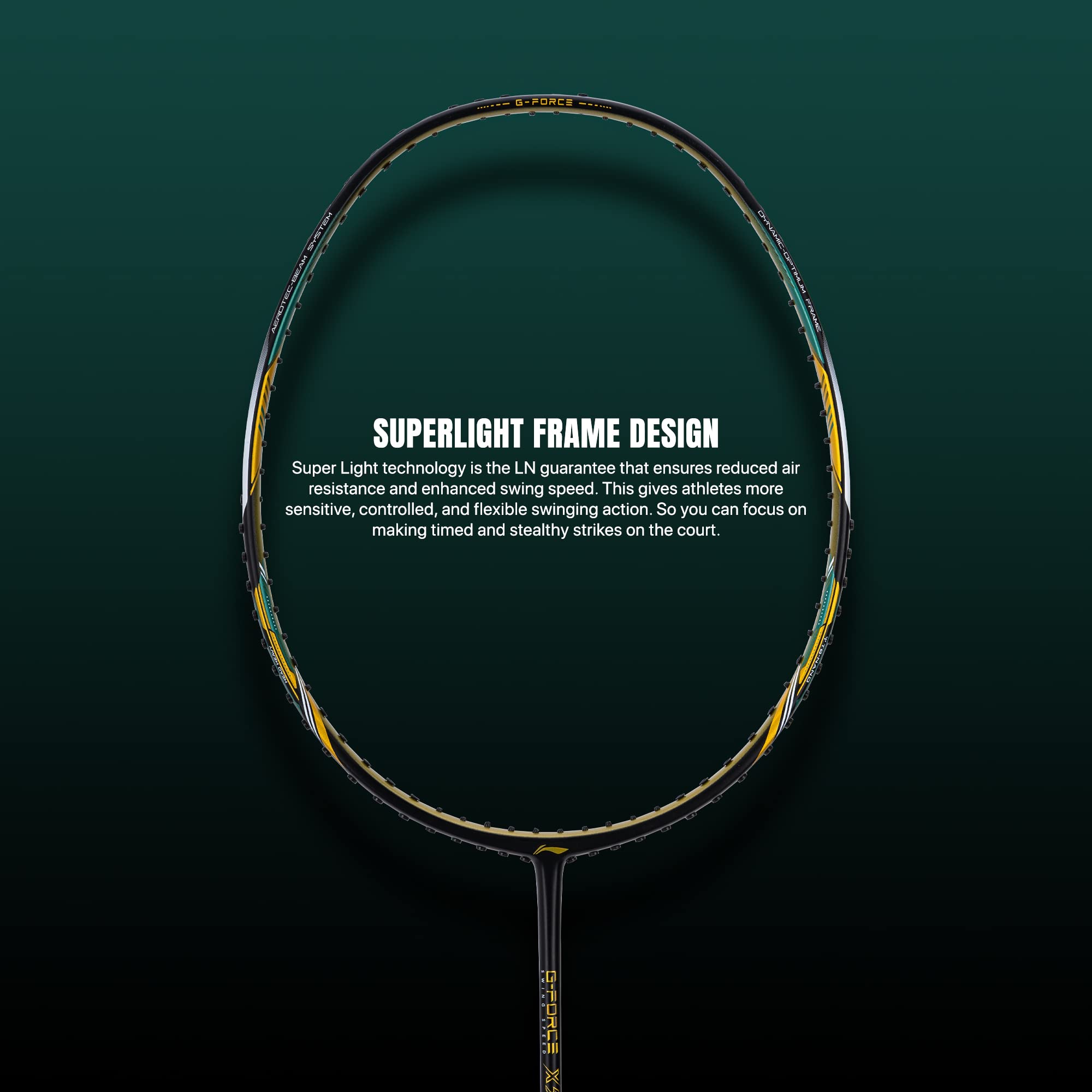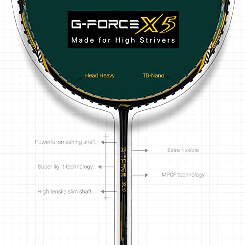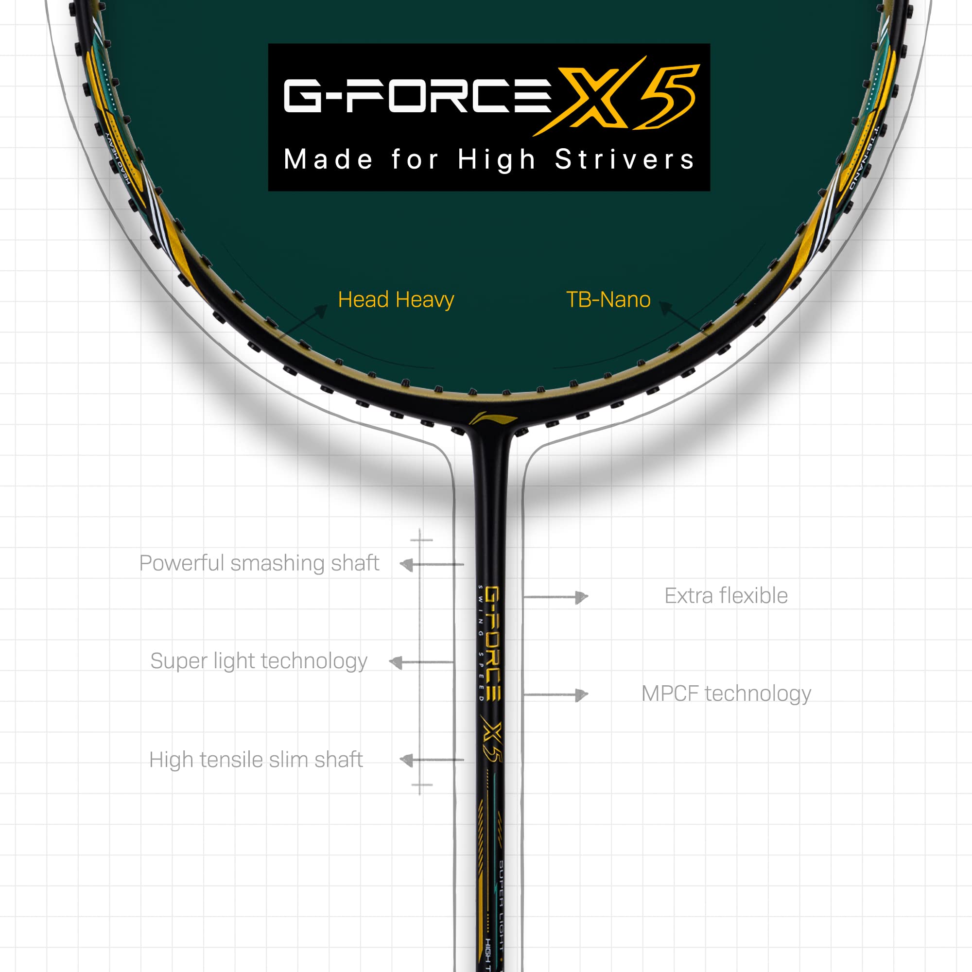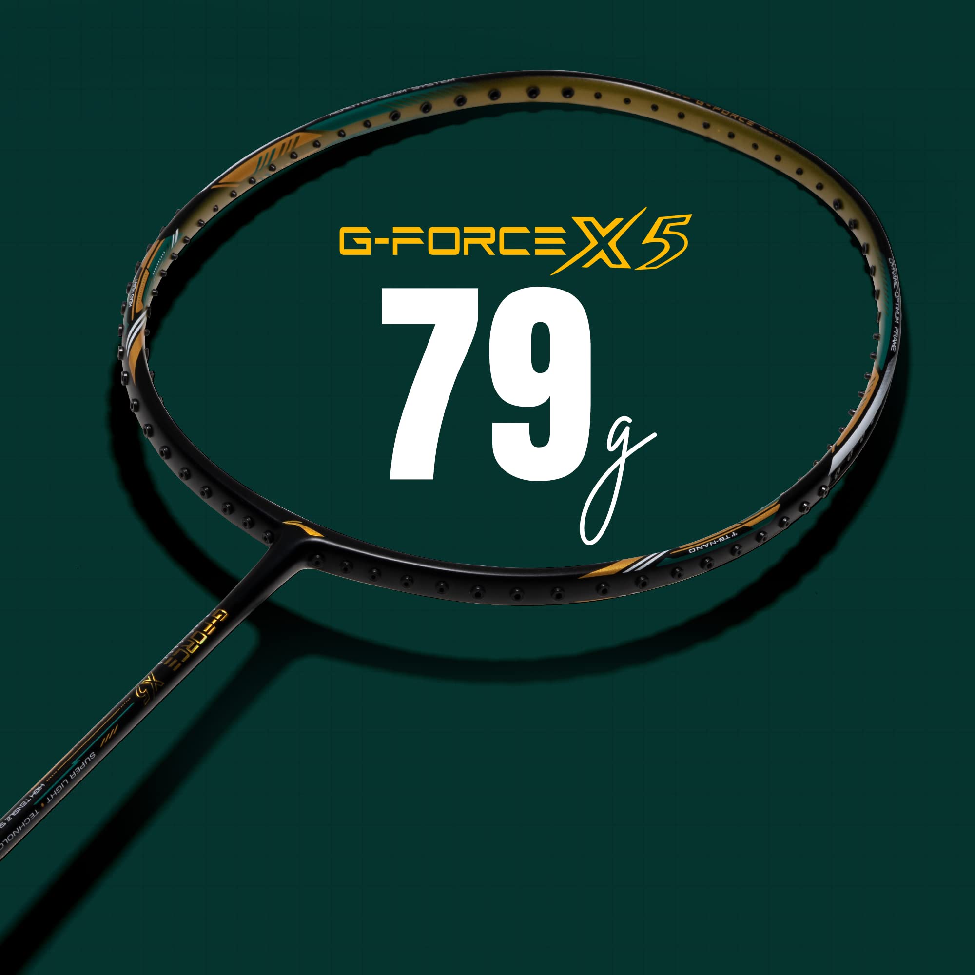Built with a powerful smashing shaft that delivers your offence attacks with mighty force. G-force X5 racket is made with a reinforcing technology that uses multi-layered carbon fibre to boost frame strength and enhance the intensity of your shots. The racket head has a dynamic optimum frame shape with an enlarged sweet spot without sacrificing durability.