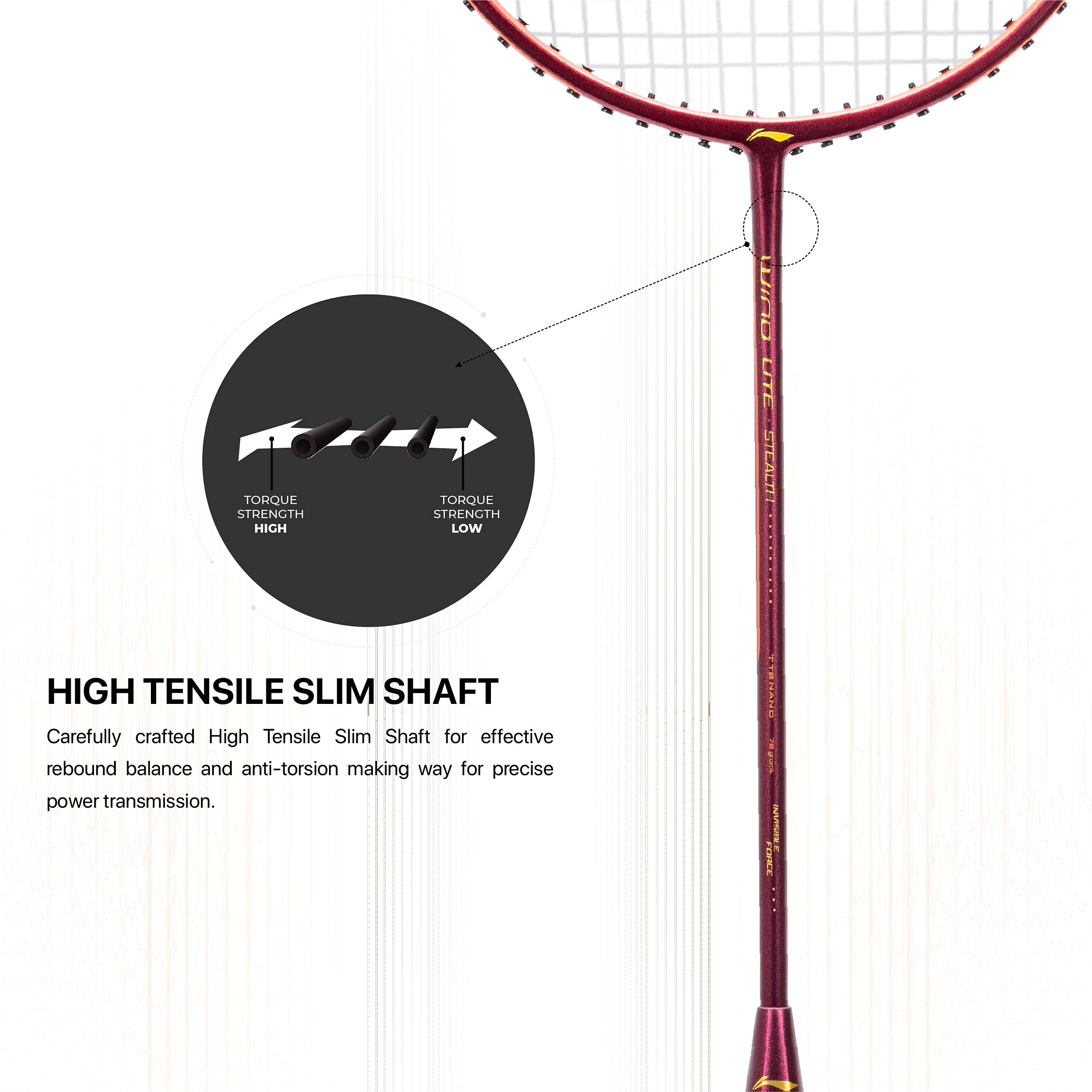 Maximum Power Transmission : The racket has been bestowed with the power of the invisible force! To facilitate maximum power transmission High Tensile Slim Shaft has been engineered for effective rebound balance and anti-torsion.