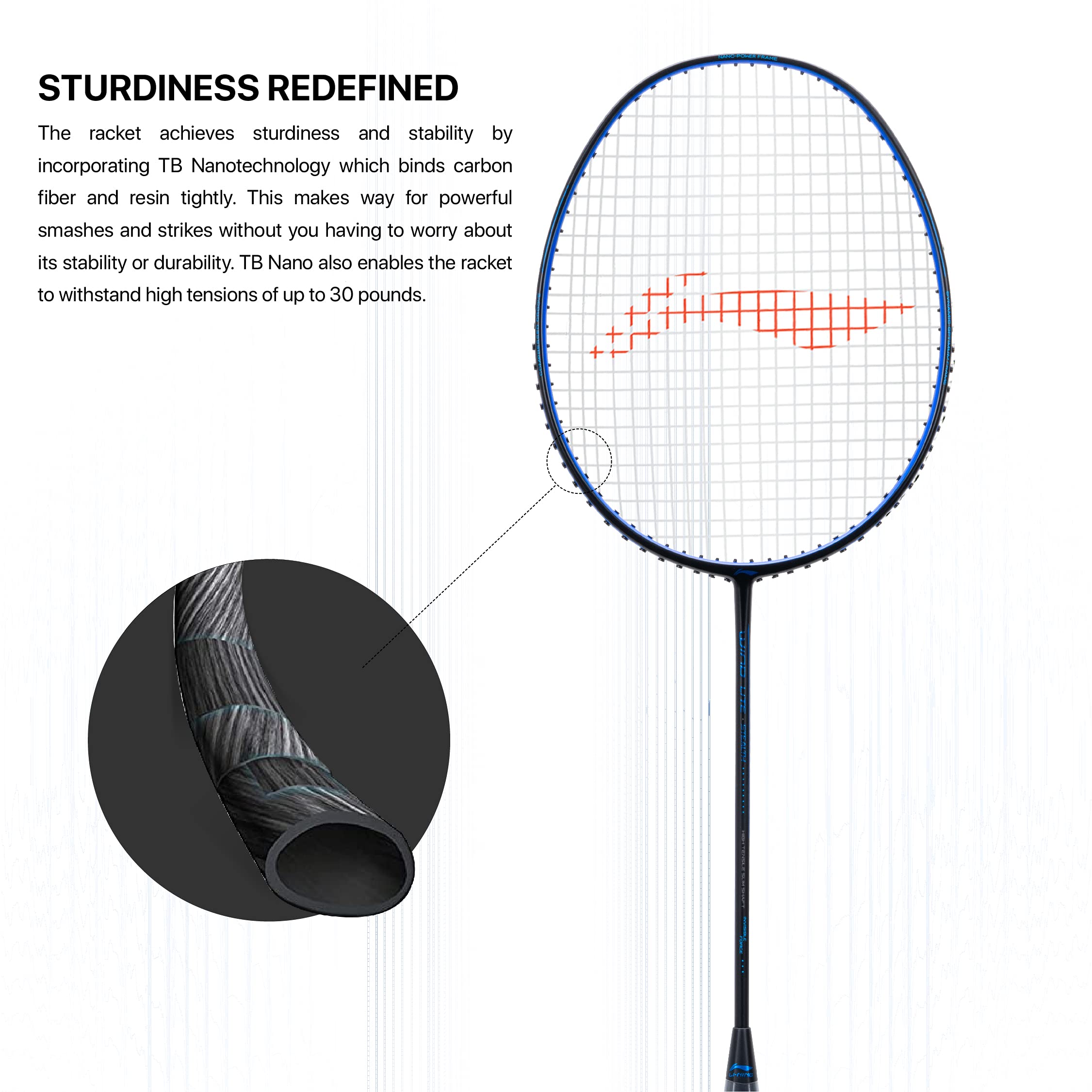 Li-Ning Wind Lite Stealth Carbon Fibre Strung(Black /Blue) Racket With Free Full Cover