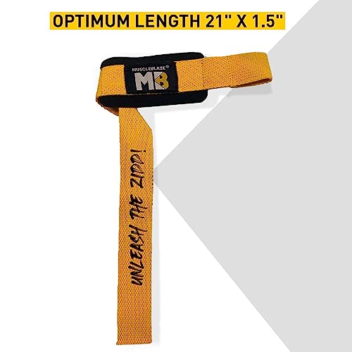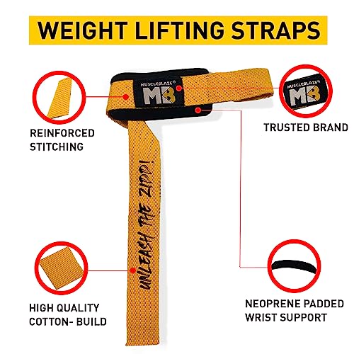 Weight lifting straps are a must-have accessory for bodybuilders powerlifters and avid gym-goers to push them to get the maximum lift with right support & stability. MuscleBlaze weight lifting straps are made for health enthusiasts who wish to represent a brand that is synonymous with passion and no excuses. This wrist supporter for gym has a premium 3 mm neoprene padding for extra comfort during heavy lifting. 21â length is ideal for wrapping around the wrists and hands to conquer your weight lifting training and set new PRs with ease.  Solid support and stability are absolute necessities for long training sessions & reduce the risk of injuries. These wrist wraps are made from 100% heavy-duty thick cotton which is the perfect blend to withstand the most intense training sessions and provide a solid support base around the wrists.