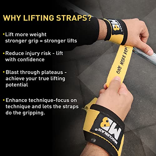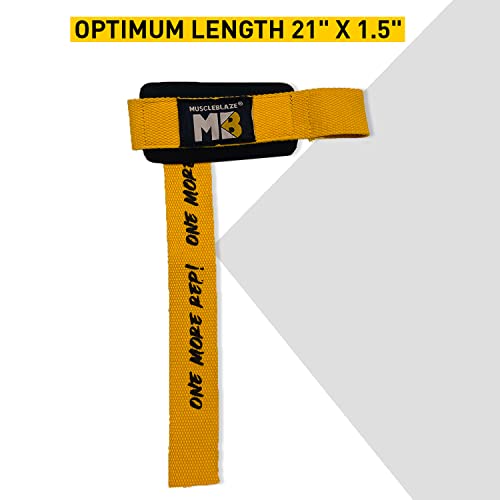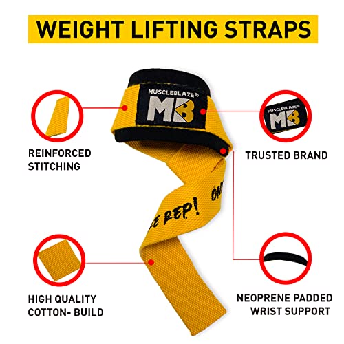 MuscleBlaze Weight Lifting Strap (One More Rep) One Pair (Yellow, Free Size) | Wrist Supporter for Gym