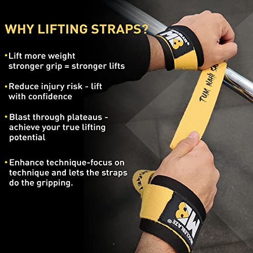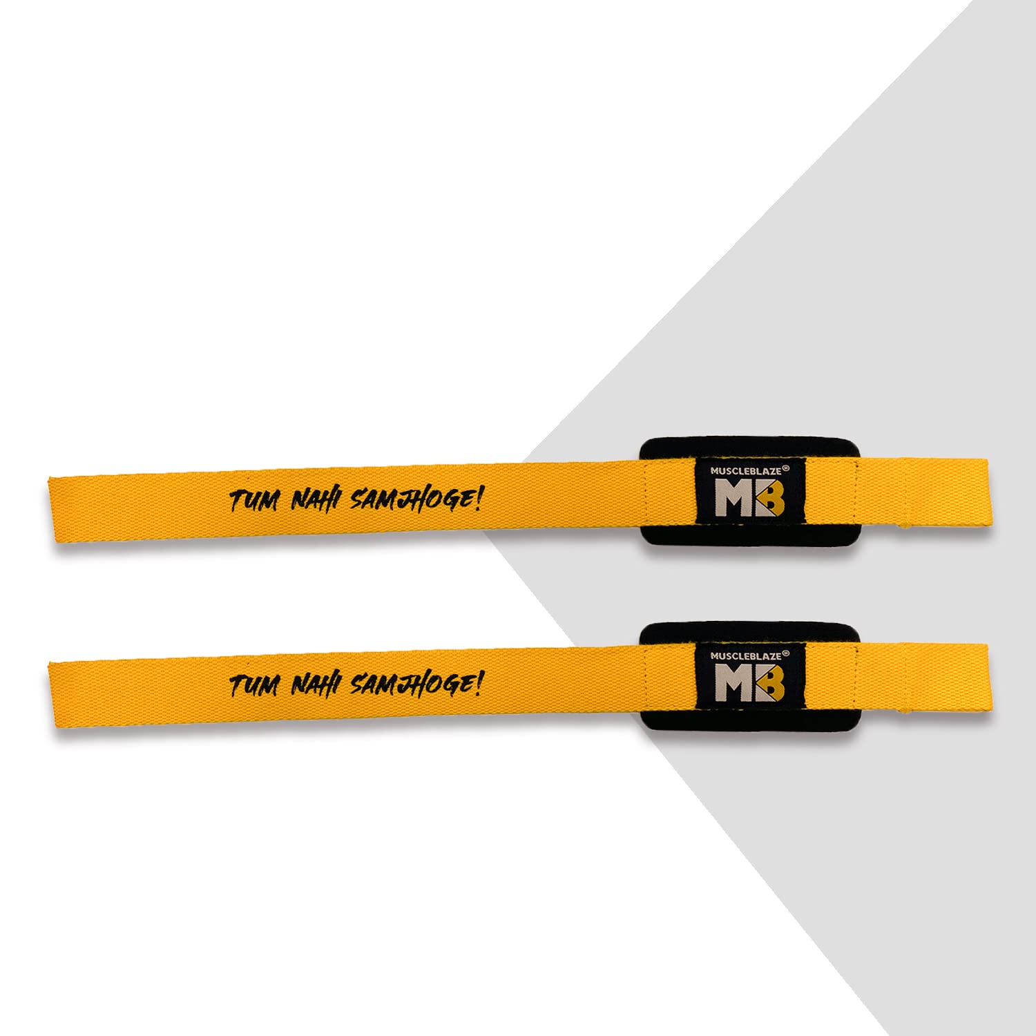 MuscleBlaze Weight Lifting Strap (Tum Nahi Samjhoge) One Pair (Yellow, Free Size) | Wrist Supporter for Gym