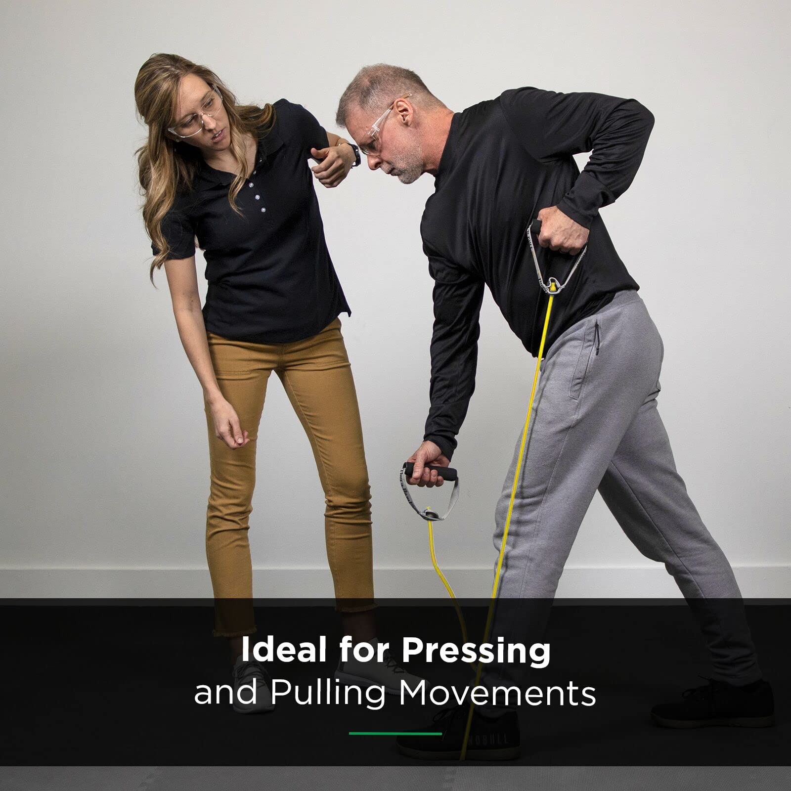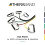 Thera-Band tubing with attached handles is endorsed by the American Physical Therapy Association and utilizes the recognized Thera-Band system of progression and familiar colors pioneered over 30 years ago. The system of progression provides for consistent increase in resistance level to offer a measurable means of tracking progress.Each natural rubber tube supplied in Yellow Red Green and Blue resistance levels is 48" long while those supplied in Black and Silver resistance levels are 50" long. Use of the Thera-Band system of bands and tubing assures consistent and familiar resistance levels and assurance of professional grade quality.