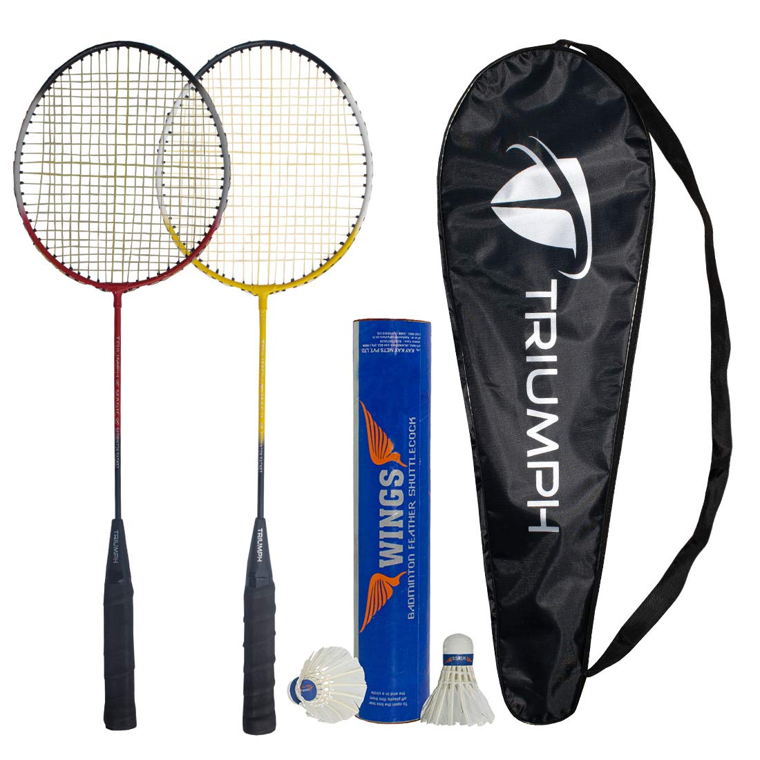 Triumph Carbon Fiber Frame and Wooden Badminton Racquet Set- 2 Pc with 10 Pc Triumph Wings Feather Shuttlecock and Full Racket Cover to Carry Both Rackets Perfect for Adults (Multicolour)