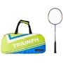 Triumph Pride Graphite Hotmelt Light Weight Strung Badminton Racket with Cosmic-6R Double Compartment Badminton Bag Lime/Sky