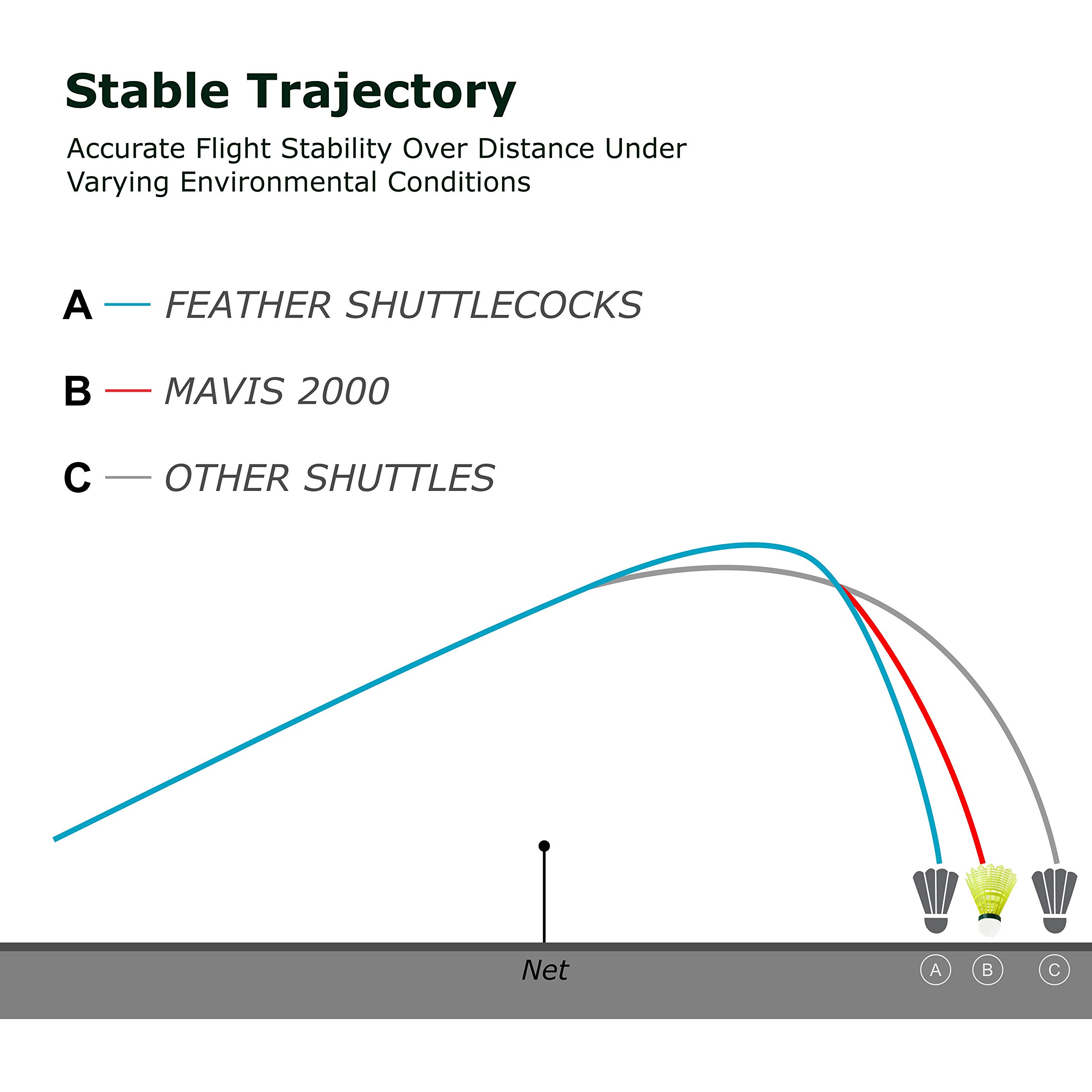 Wing Rib design utilizes air flow through the shuttlecock to restore shape quickly on impact.