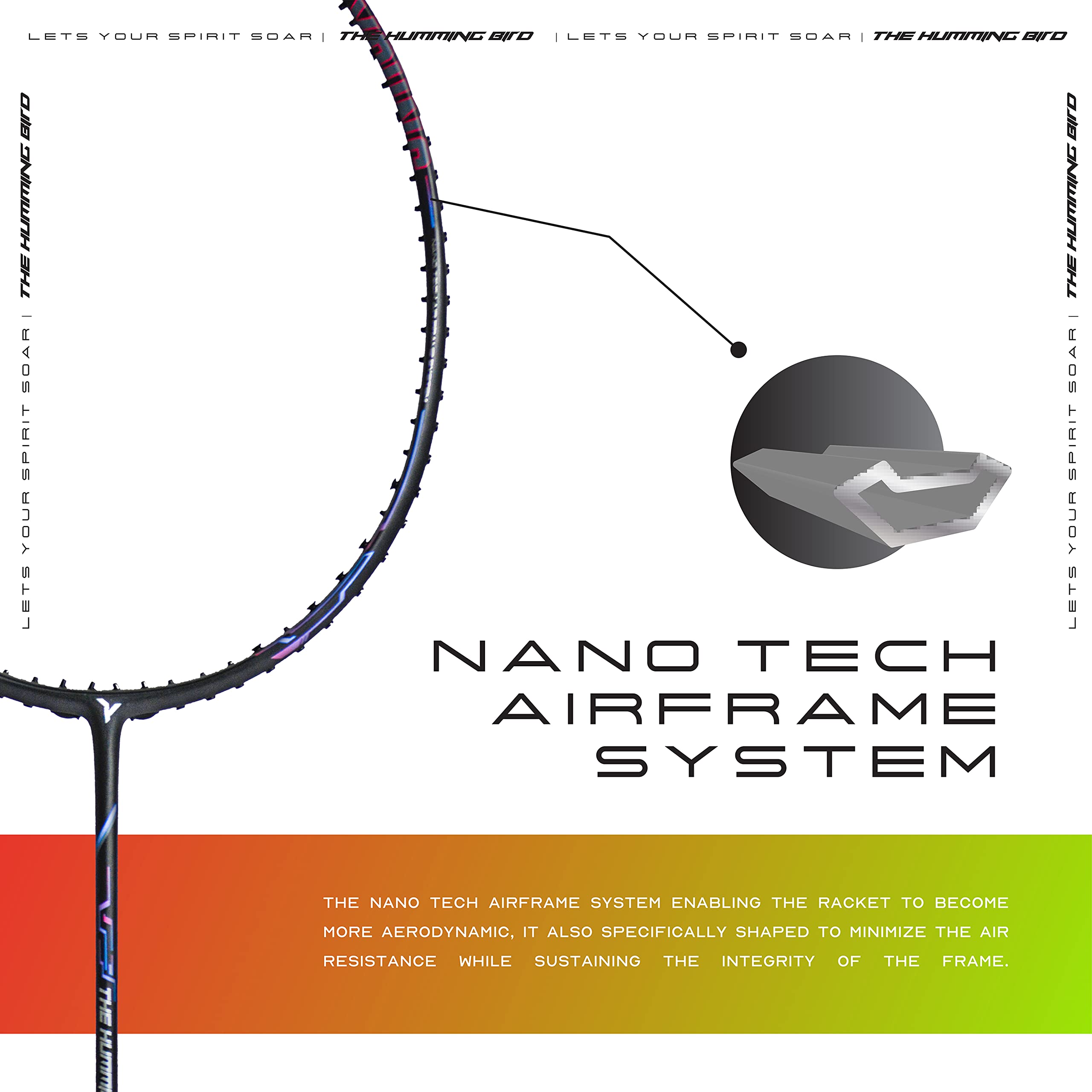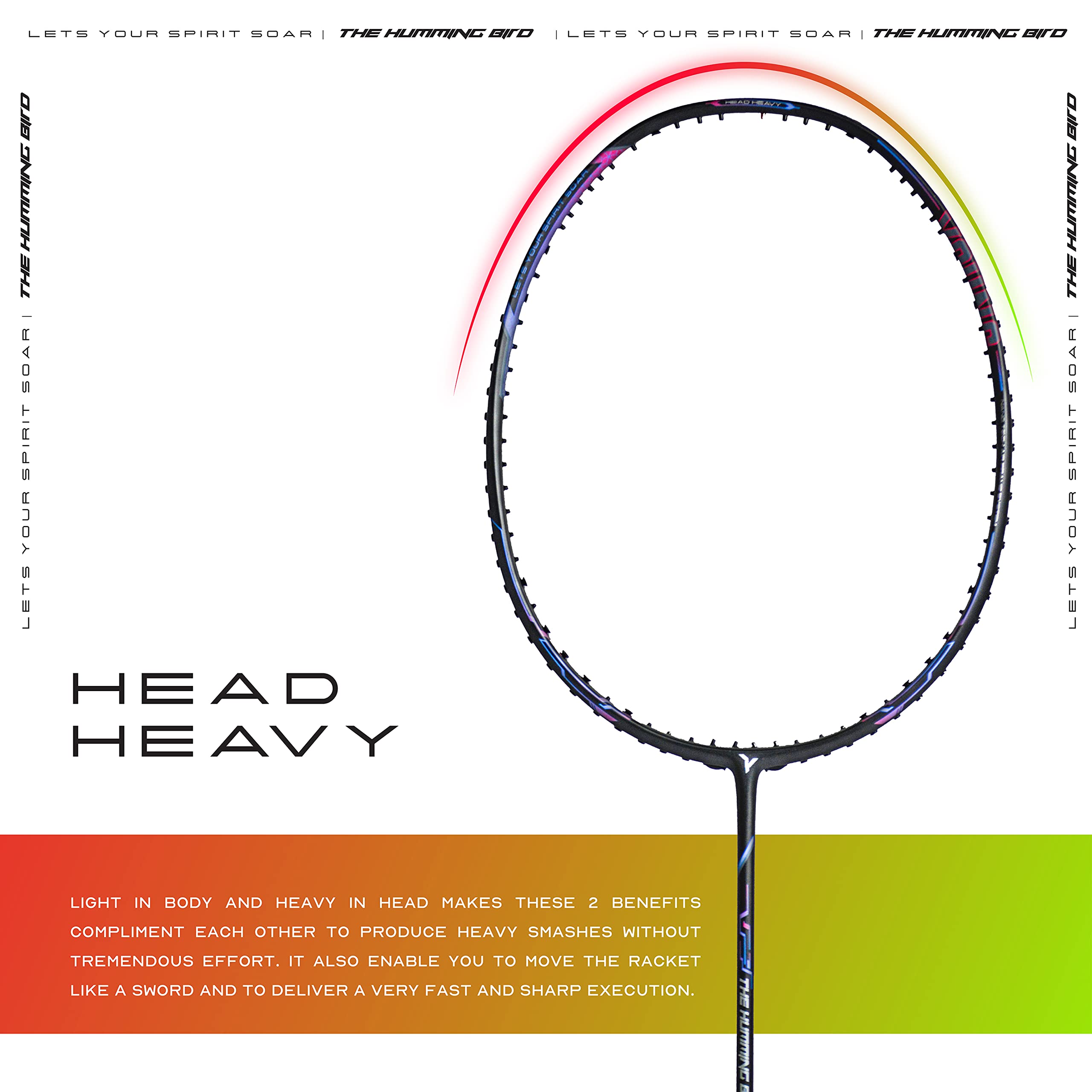 HEAD HEAVY: Light in body and heavy in head makes these 2 benefits compliment each other to produce heavy smashes without tremendous effort. It also enable you to move the racket like a sword and to deliver a very fast and sharp execution; NANO TECH FRAME: The nano tech airframe system enabling the racket to become more aerodynamic it also specifically shaped to minimize the air resistance while sustaining the integrity of the frame; MEDIUM FLEX SHAFT: The medium flex shaft reduces drag and enables the racket to be highly responsive. The thickness of the shaft reduces overall racket weight and thus creating high speed smashes with ease.