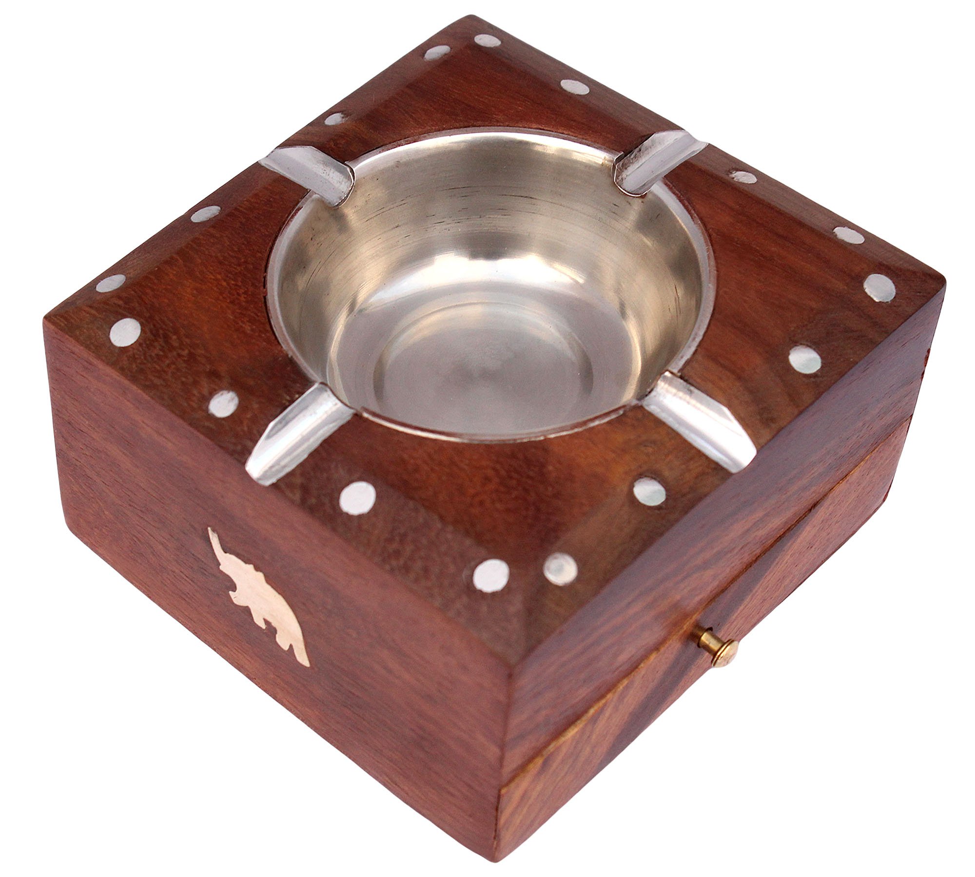 BIJNOR - METAL INLAY IN WOOD Wooden Handmade Ashtray with Cigarette Holder 4 Slots for Home Office Car