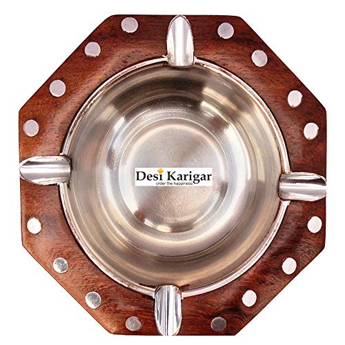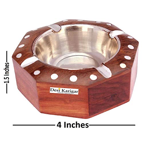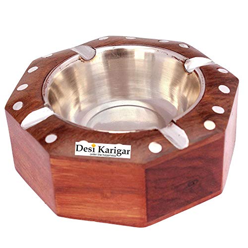 A beautiful piece of art this wooden ashtray Made by Desi Karikar Artisans with pierced decorations all over and a silver bead work will enhance the look of the table it is placed on. The exterior of the ashtray boasts of a deep brown wooden finish. Desi Karigar Wooden Premium Quality Antique Ashtray With White Work is constructed out of the finest quality materials. A pure wood color is used in the design so you won't have to worry about the color of ash ruining its beauty. Deal with ash and butts the stylish simple way with an ashtray that can truly weather the weather outdoors. Order the Wooden Premium Quality Antique Ashtray With White Work for yourself or to give as a gift for any occasion.