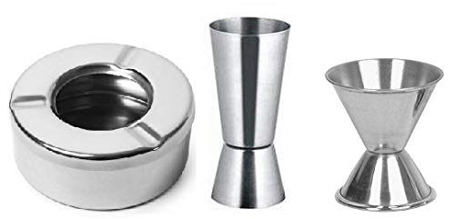 Get the right measure with peg measure each time without breaking into a sweat. A resourceful addition to any bar or Restobar.Break-resistant and Burn-resistant.A very Innovative Product and a great invention. Impress one and all with this exquisitely designed product that stands out from rest, itÆs a Perfect Accessory to a Well-Stocked Bar, as it comes with two opposing on both the ends with the CAPACITY - 30/60 ml and 20/40 ml. Made from 100% Stainless Steel making them highly durable and resistance to corrosion.Ash tray having high quality and sits nicely and presentably when placed. The ash tray is with a lid.A great ashtray for home or for use in any bar, club, or restaurant with smoking facilities.This standard-sized ashtray is made of strong stainless steel They feature 3,resting slots rather than firm grip slots, allowing for less broken cigarettes.The design is made to work in any setting or establishment. This ashtray is a definite choice for any outdoor dining, beach bar, patio bar, and pool deck type environments.