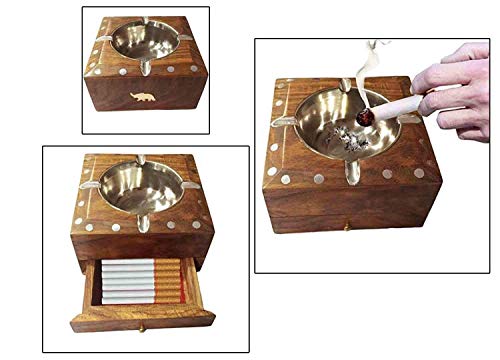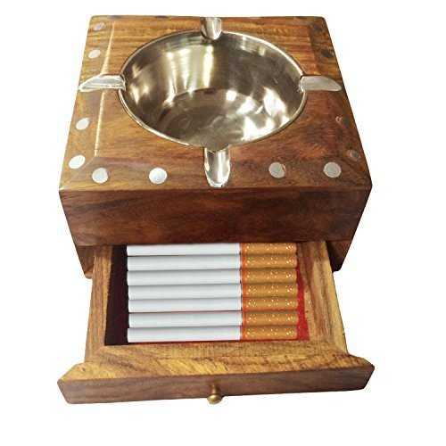 Ashtrays are a must for any cigar smoker. We present a unique range of ash catchers that are artful with a modern twist. Grab one to compliment any smoking session with just the right touch of class. Handcrafted ashtray in Sheesham Wood (Indian rosewood) with a steel cup inside and drawer. Hand made by skilled artisans with premium finishing