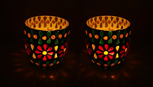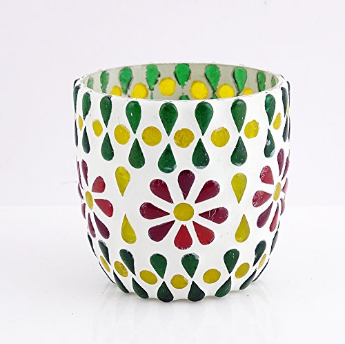 Brahmz offers you a beautiful mosaic glass tea light candleholders. These are completely hand made with small glass pieces assembled in mosaic style. Place a tea light candle inside this votive and let glow of the vibrant rays create a peaceful ambience in any room of the house
