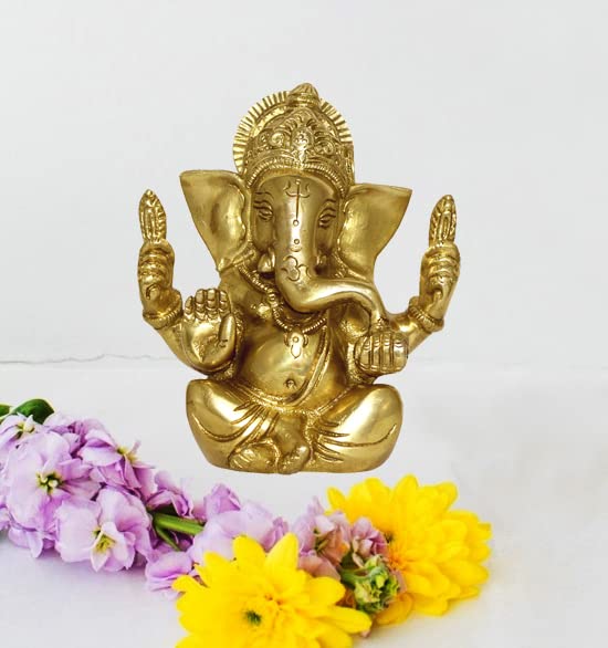 HomeHomeHome AccentDecorative AccessoriesP.J.Handicrafts Brass Metal Statue of Shri Ganesha Ganpati Murti for Home Entrance Decor Diwali Gift for Home & Office Yellow Size4.5