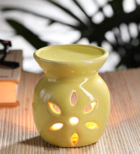 Christmas Vibes Brings To You This Diffuser / Oil Burner. This Aroma Diffuser Is A Very Good-Looking Ceramic Diffuser Which Can Efficiently Diffuse Aroma In The Area Where Kept. Put The Soild Aroma Oil Bar In The Pan Above And Enjoy The Aroma. It Can Be Used For Aromatherapy By Using Essential Oils And Also Can Be Used As Insect Repellents With Oils Like Camphor Lemongrass. Also Its Attractive Design Makes It A Great Piece For Decor. Aroma Diffuser Can Be Used In Offices Or Cabins Home Powder Rooms.Material: Ceramic | Exclusively Handcrafted By Regional Artisans From Khurja