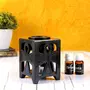 PRODUCT DESCRIPTION:Have a stress-free time at home & office with this classy Soapstone aroma diffuser in black shade. The diffuser shows beautiful carving & cutwork on three sides of the burner. It comes with a space at the top to hold the oil an open space at the back to insert the tealight candle inside which comes with the package and also two of KHURJA POTTERY's special fragrance oils to complete the set. It for sure is a valuable and unique gift for your loved ones.FEATURES:Handcrafted in Soapstone this cuboidal oil burner with beautiful carving & cutwork is an ideal decorative and therapeutic tool for your home.Use it to burn essential or aroma oils and spread positivity around your house.You can also use it in offices.A much-needed and unique gift item for your loved ones.NOTE:Please refer to the dimensions in the image.Since this gift set is handcrafted there might be a slight variation in the color size or design of the actual product from the product image shown here.CARE INSTRUCTIONS:Handle with care.Wipe it clean with a mildly wet cloth.Do not use any abrasive susbtances on this product.