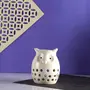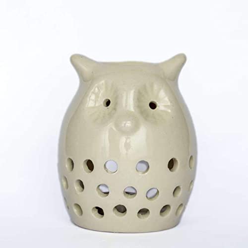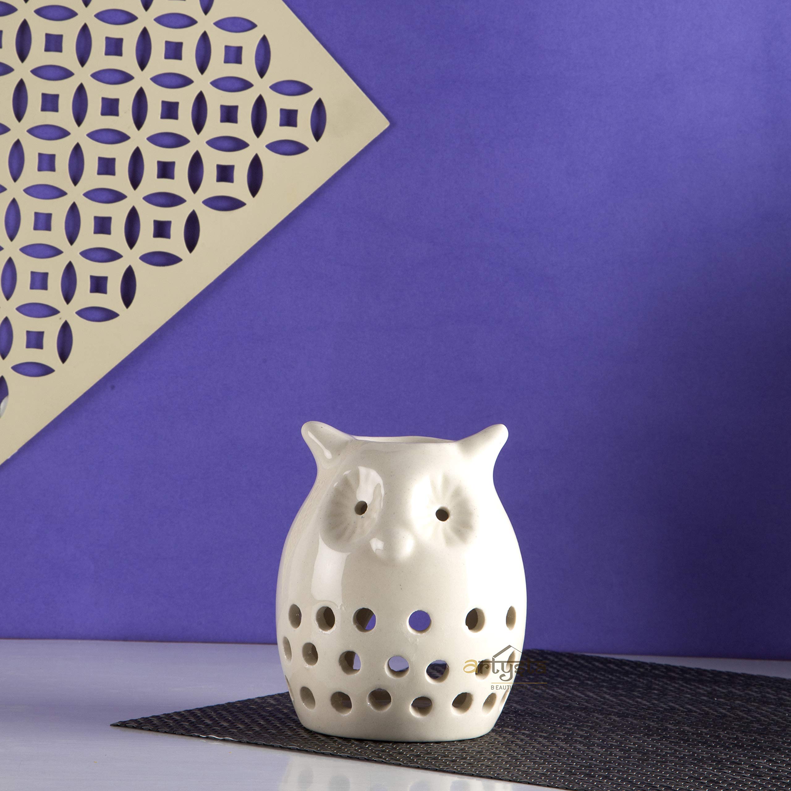 PRODUCT DESCRIPTION:Aromatize your house with this quirky and thoughtful white-shaded aroma diffuser in Ceramic. The diffuser comes with a space at the top to hold the oil an open space at the back to put the tealight candle inside which comes with the package and also two of KHURJA POTTERY's special fragrance oils to complete the set. Handcrafted whilst depicting a peeking owl it is for sure a valuable and unique gift for your loved ones especially children.FEATURES:Handcrafted in Ceramic this owl-shaped oil burner is an ideal decorative and therapeutic tool for your home.Use it to burn essential or aroma oils and spread positivity around your house.You can also use it in offices.Also acts as a wax burner.A much-needed and unique gift item for your loved ones.NOTE:Please refer to the dimensions in the image.There may be a slight variation in the glazing color or finish of the product as the glazing is done inside the furnace at a very high temperature to make the product strong and sturdy.Due to the firing done it is also sometimes impossible to predict the color of the glazing or finish. Hence the actual product may differ slightly from the images.This product is not made of Bone China.CARE INSTRUCTIONS:Handle with care.Wipe it clean with a mildly wet cloth.Do not use any abrasive susbtances on this product.