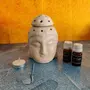 PRODUCT DESCRIPTION:Aromatize your house with this positive ivory-colored Buddha-shaped aroma diffuser in Ceramic. The diffuser is uniquely designed in such a way that the top can be opened to pour aroma oil in it and the tealight holder can be put inside the Buddha underneath the top so that it burns the oil above. Thus this package contains two of KHURJA POTTERY's special fragrance oils & a tealight candle to complete the set. It makes for an elegant and thoughtful home dcor & gift for your loved ones.FEATURES:Handcrafted in Ceramic this oil burner representing a meditating Buddha idol is an ideal decorative and therapeutic tool for your home.Use it to burn essential or aroma oils and spread positivity around your house.You can also use it in your worship workplace or in your living room.A gift item that is auspicious and will grant happiness to your family and friends.NOTE:Please refer to the dimensions in the image.There may be a slight variation in the glazing color or finish of the aroma diffuser as the glazing is done inside the furnace at a very high temperature to make the product strong and sturdy.Due to the firing done it is also sometimes impossible to predict the color of the glazing or finish. Hence the actual product may differ slightly from the images.The burner is not made of Bone China.CARE INSTRUCTIONS:Handle with care.Wipe it clean with a mildly wet cloth.Do not use soap or any abrasive susbtances on this product.