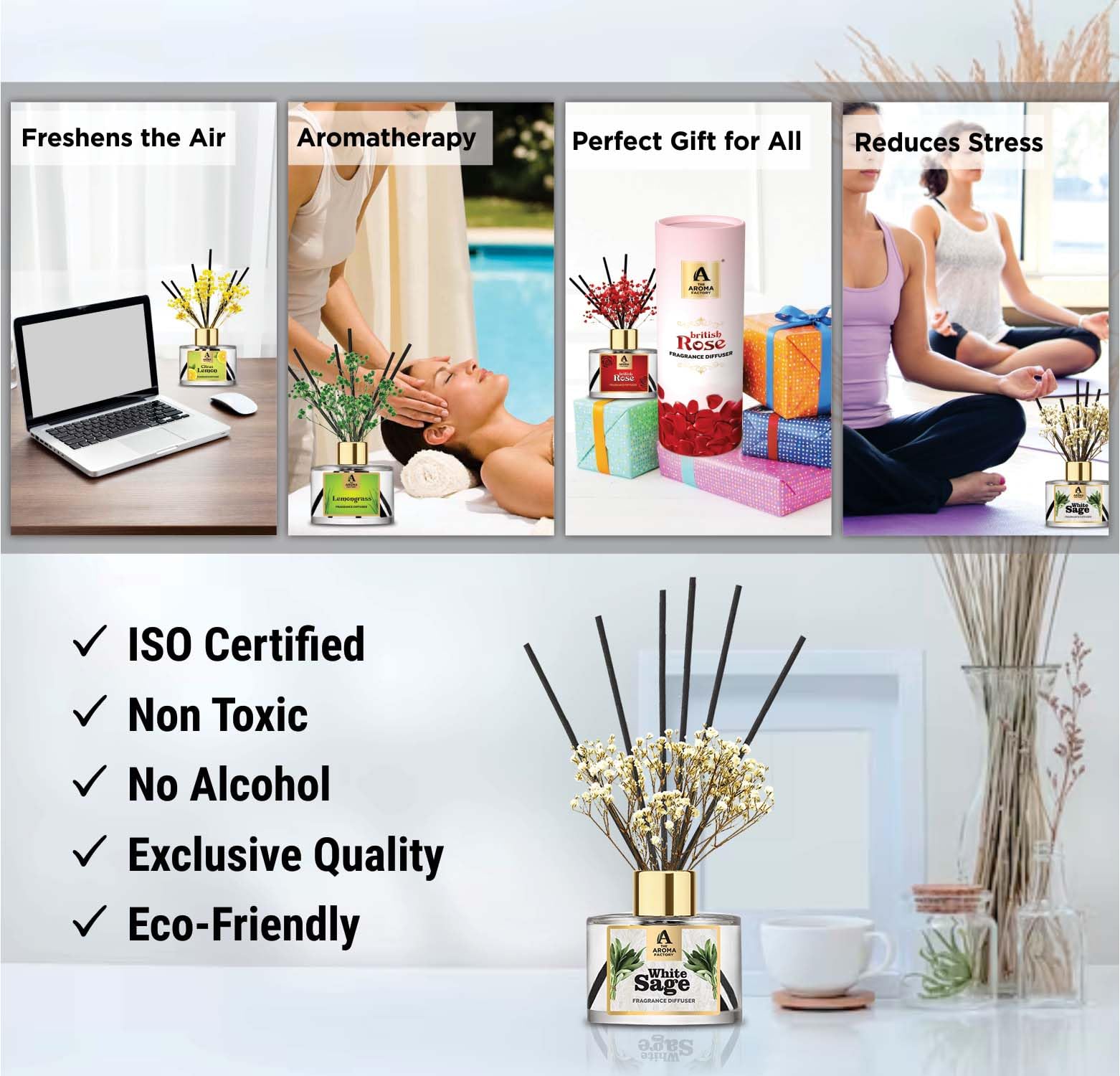 Try Our Range : Rose Lavender Lemongrass Citrus Lemon Fresh Active White Sage Diffusers