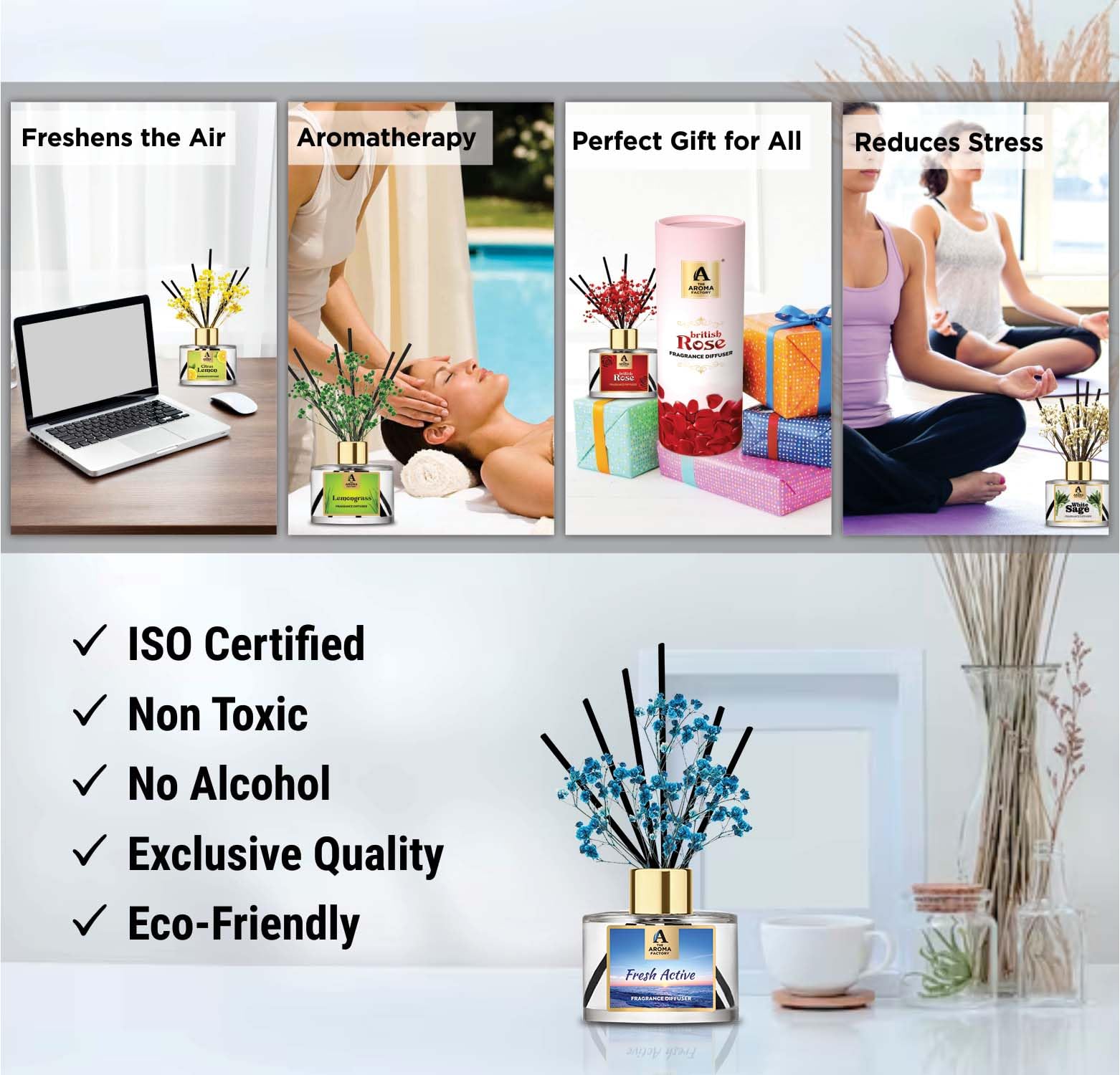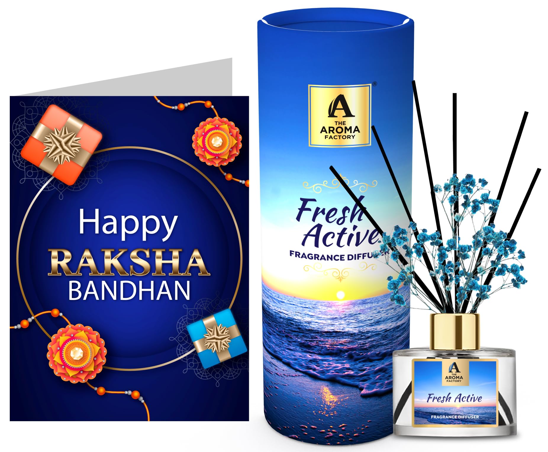 The Aroma Factory Happy Raksha Bandhan Rakhi Greeting Card & Fragrance Reed Diffuser Gift Set Fresh Active (1 box + 1 Card) The Aroma Factory Reed Diffusers are perfect gift for friends family. Fresh Fragrance curated by Scented oil essential Perfumers to add magic aromas to your senses. Made using natural essential oils in alcohol free aromatic fragrance base. celebration with greeeting happy cards. Hamper fibre fiber rattan reeds. Refill & Reuse they last upto 60 days based on usage/air at home office spa. Try Our Range : Rose Lavender Lemongrass Citrus Lemon Fresh Active White Sage. The Aroma Factory Eid Mubarak Greeting Greeting Card & Fragrance Reed Diffuser Gift Set British Rose (1 box + 1 Card)