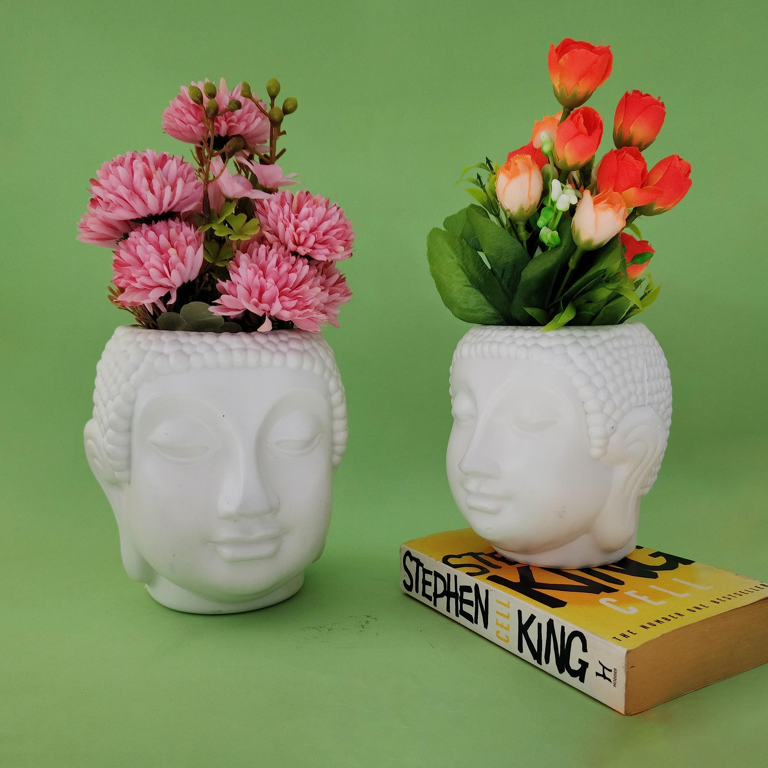 • Package Contains :- 2 Pc Buddha Face Flower Pot Vases for Artificial Flowers