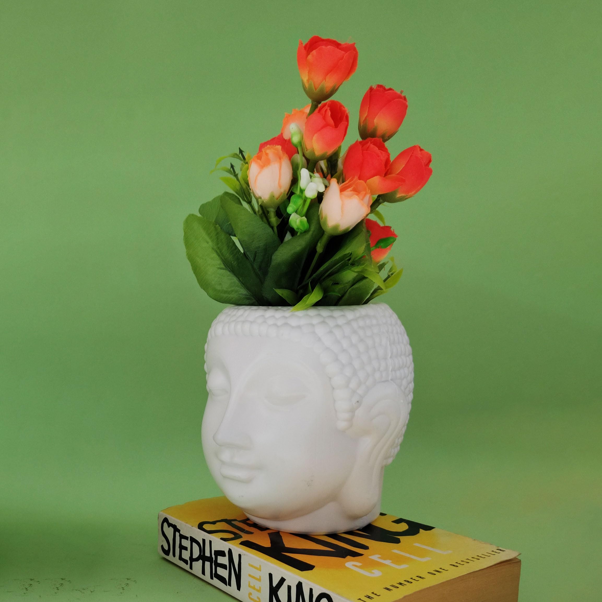 Buddha Face Artificial Flower Pots Vases for Home Decoration | Buddha Face Plastic Pot for Home Decor Indoor Outdoor Gardening Balcony Living Room (6.5 Inches Height)