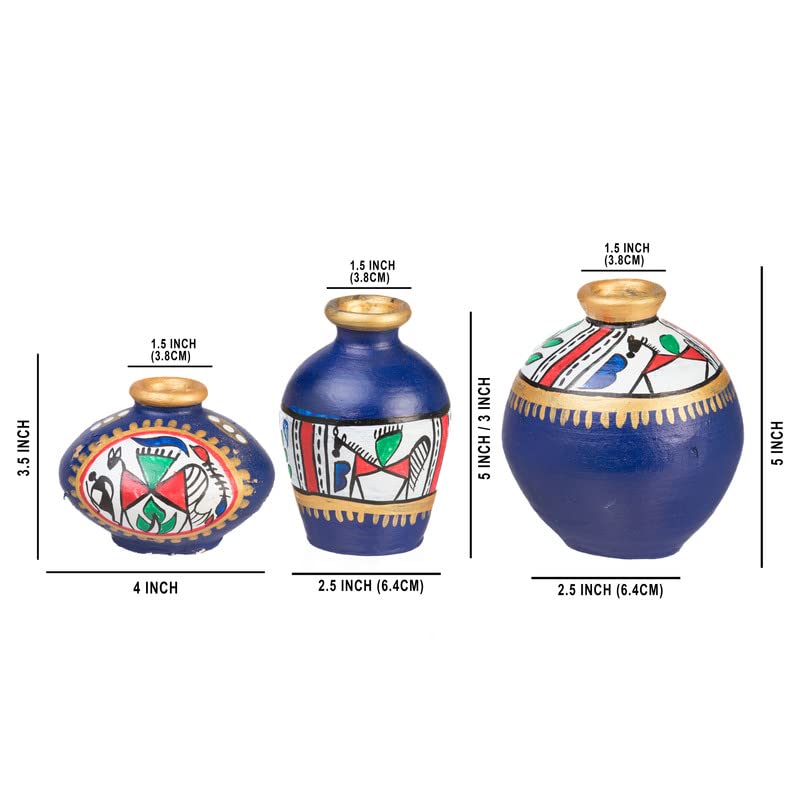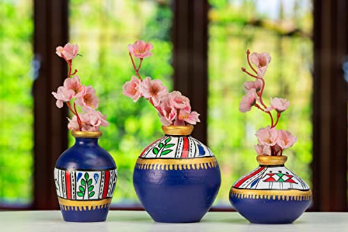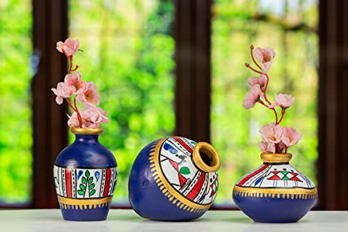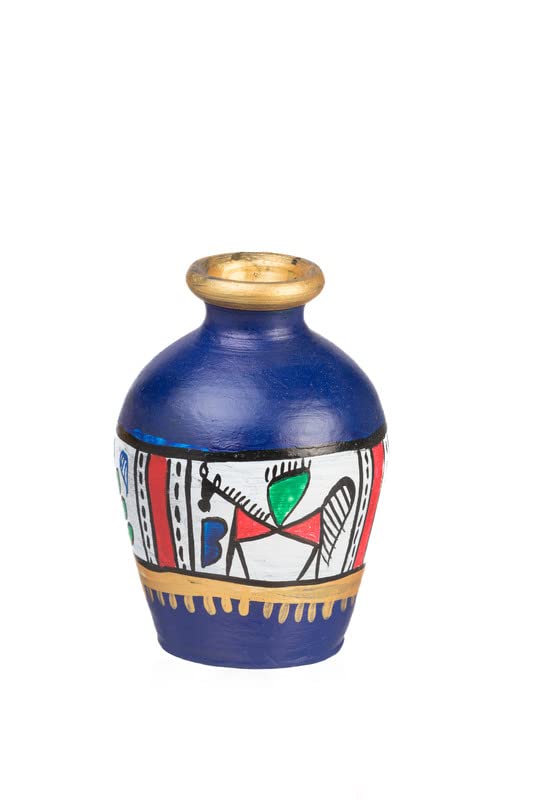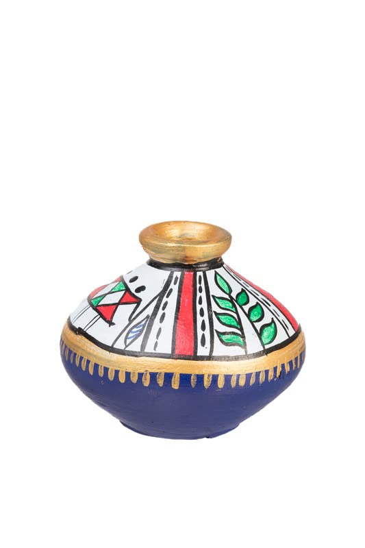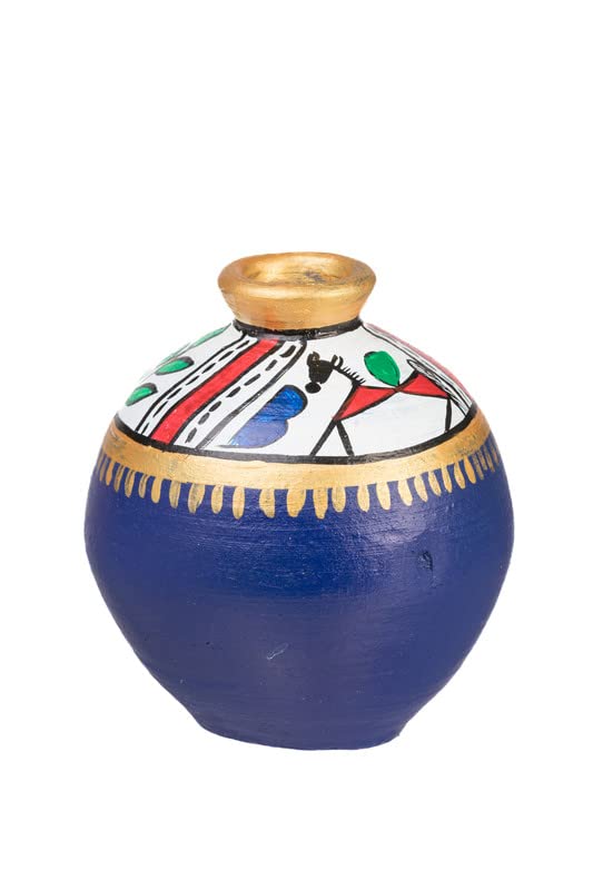 Karru Krafft Skillfull artisan created in terracotta and hand-ted with excellent details by skilled and semi-skilled individuwith a respect for art and craft using India's native resources methods and technology that also functions as an ethnic table top adornment. The flower vase has been hand-ted in a circular patch with an indigenous Indian traditional artwork. The small size and uncomplicated functionality are suitable for living room / child's room/bed room/balcony garden decoration Shelf Decoration and Ideal for Gifing making them appear more domestic and bringing joy into your home.