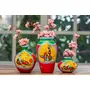 Karru Krafft Handmade Terracotta Clay African Printed Firozi Flower Vase for Indoor / Home Decoration Table Top Resort Decoration and Ideal for Gifting Set of 3 Red (17.05 x 15.06 x 10.15 cm)