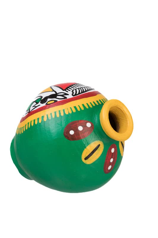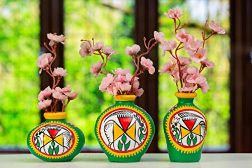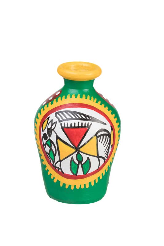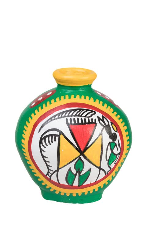Karru Krafft Skillfull artisan created in terracotta and hand-ted with excellent details by skilled and semi-skilled individuwith a respect for art and craft using India's native resources methods and technology that also functions as an ethnic table top adornment. The flower vase has been hand-ted in a circular patch with an indigenous Indian traditional artwork. The small size and uncomplicated functionality are suitable for living room / child's room/bed room/balcony garden decoration Shelf Decoration and Ideal for Gifing making them appear more domestic and bringing joy into your home.
