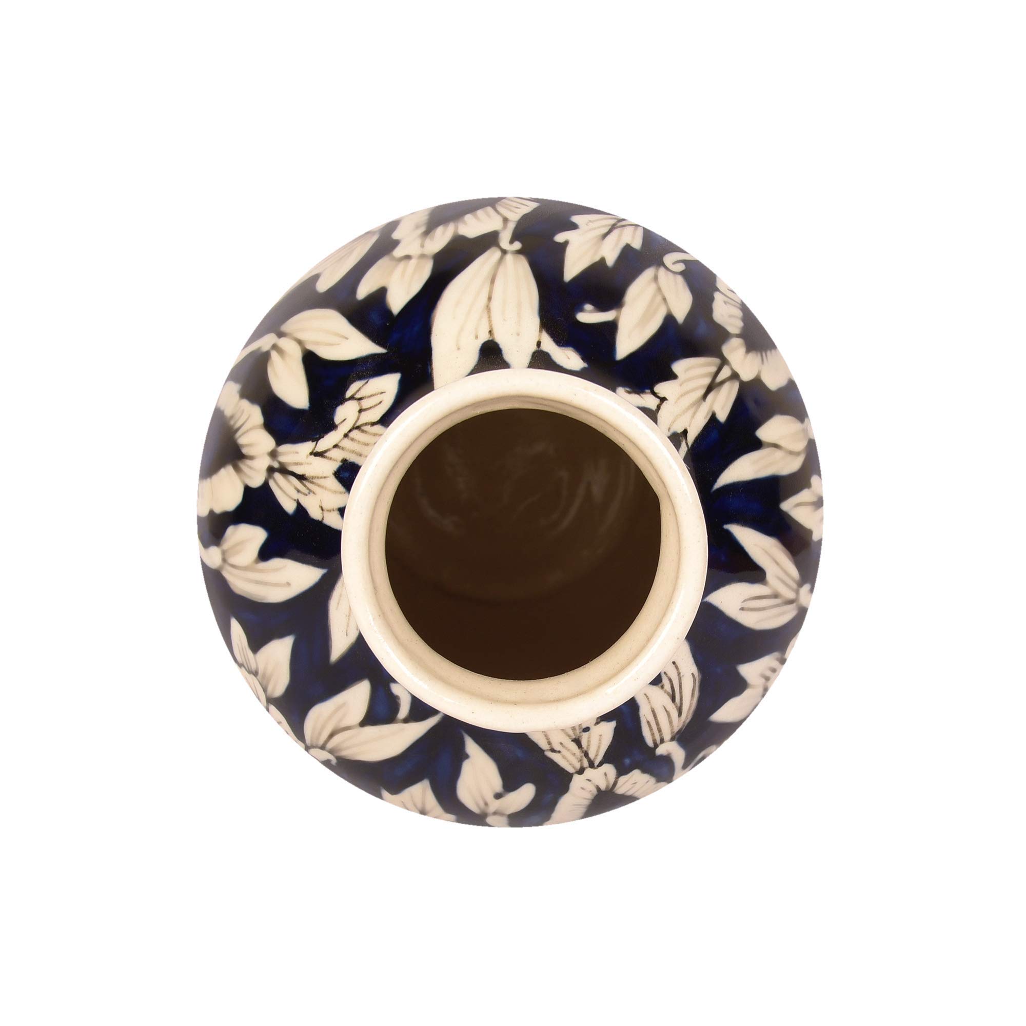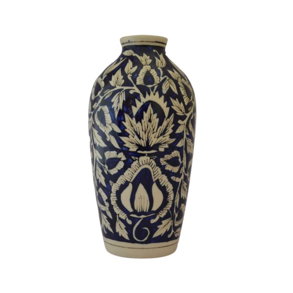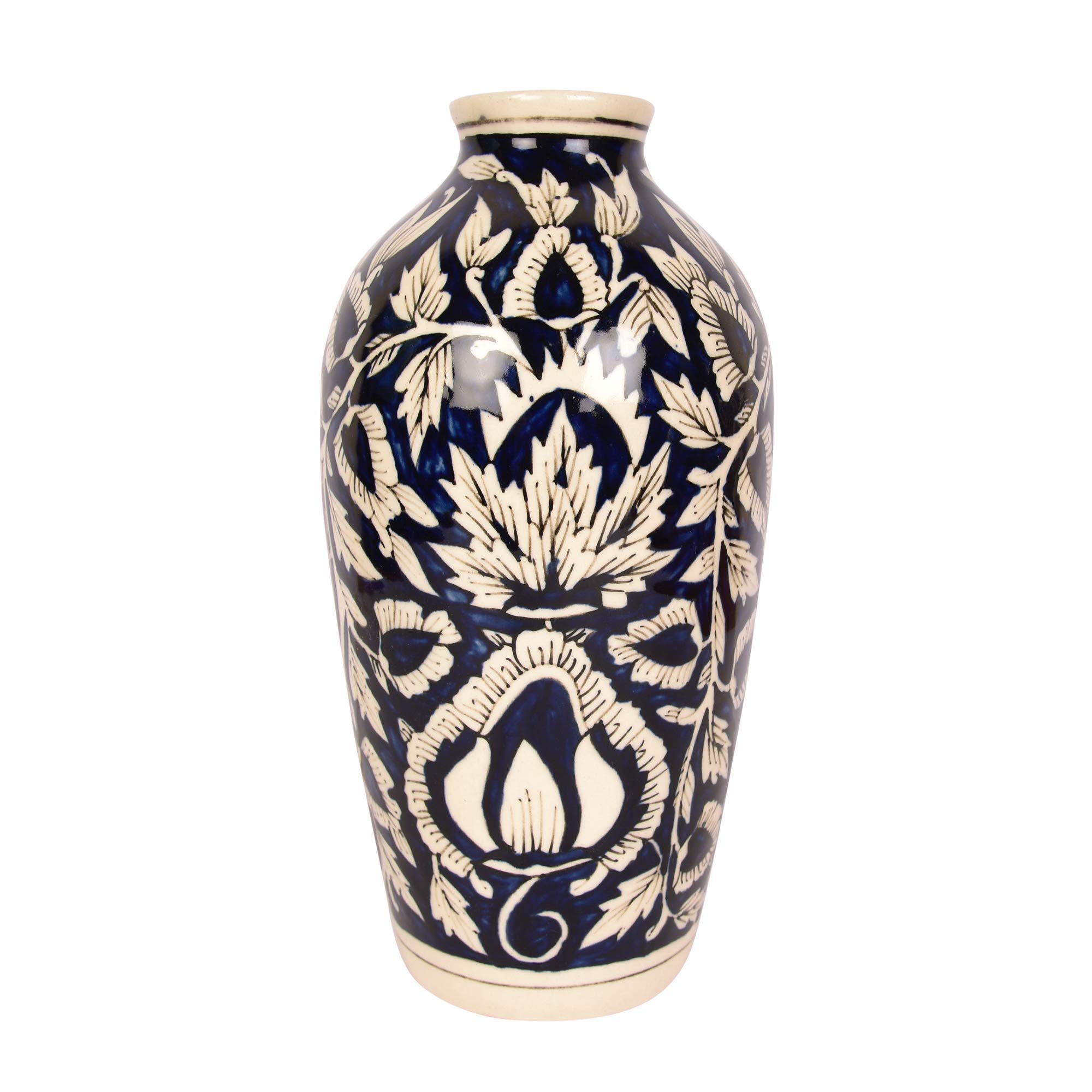 KHURJA POTTERY Painted Ceramic Flower Vase for Living Room | Long Decorative Vase | 12 Inch Blue Pottery vase