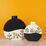 KHURJA POTTERY Warli Flasks Black Hand-Painted Terracotta Flower Vases Terracotta Decorative for Home Earthen Flower Vase Pots for Home (Set of 2)