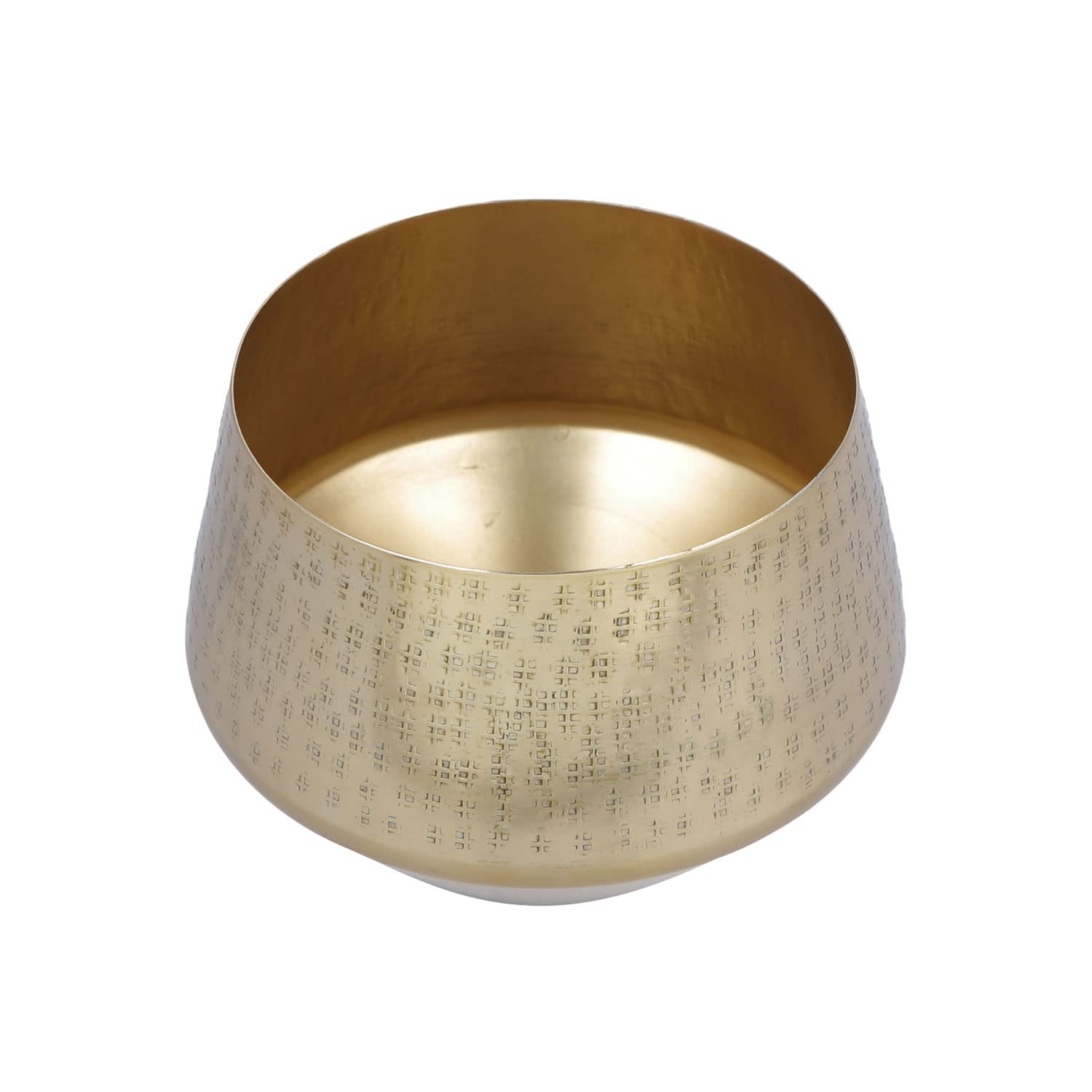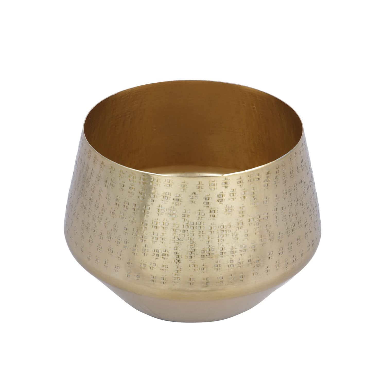 This handcrafted flower vase is made of metal and decorated. The ideal decorative piece for your drawing room living room indoor outdoor balcony garden & home and office. Rich gold color work beautifies the product. Emboss work with gold colour theme augments the brilliancy of the vase. It symbolize spirituality holiness royalty and beauty. The glorious techno-colour display puts us in a mood to embrace our own nobility; making us stand tall and proud like it. The flower vase extends the beauty of its contents and symbolize fertility and acceptance. It is nice concept for a gift and would be an object of attention in your office or home. Being crafted by hands.
