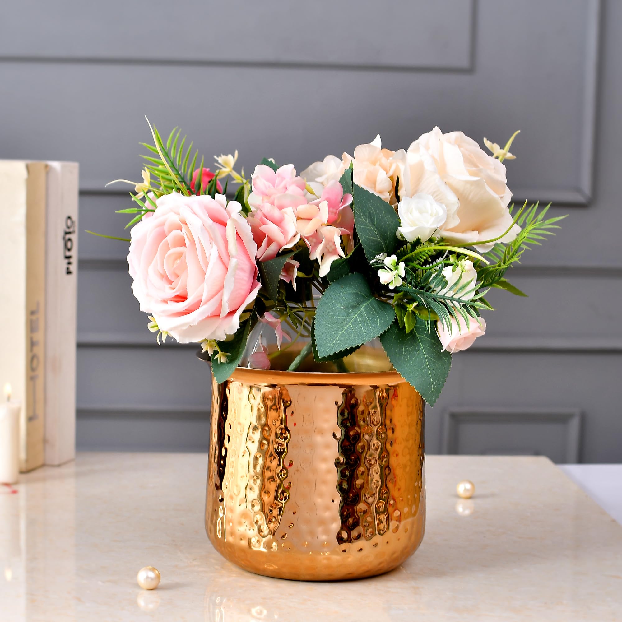 Introducing our versatile Metal Flower Pot Vases perfect for indoor and outdoor planting. These exquisite vases combine durability with elegance enhancing the beauty of your plants and adding a touch of sophistication to any space. Crafted from premium-grade metal these vases are built to withstand the elements making them ideal for both indoor and outdoor use. The sturdy construction ensures long-lasting performance while the sleek design complements any decor style from contemporary to traditional. these vases provide ample space for your favorite plants allowing their roots to thrive and flourish. The wide opening facilitates easy planting and maintenance making it a breeze to create stunning arrangements and keep your plants healthy.