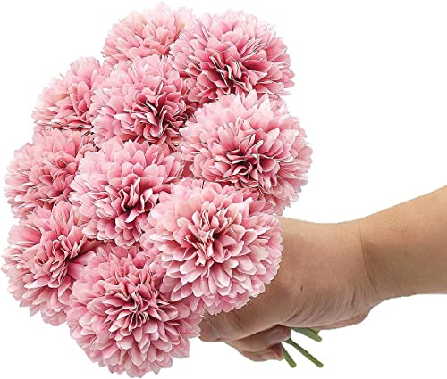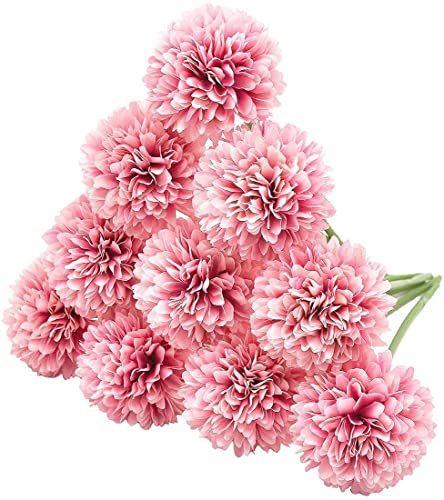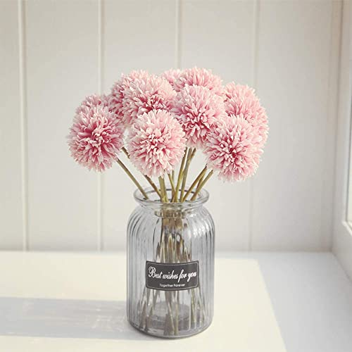SATYAM KRAFT 5 Pcs Artificial Chrysanthemum Ball Hydrangea Flower Stick for Home Office Bedroom Balcony Living Room Decoration and Craft - (Pink Color) (Pack of 5) (Without vase)