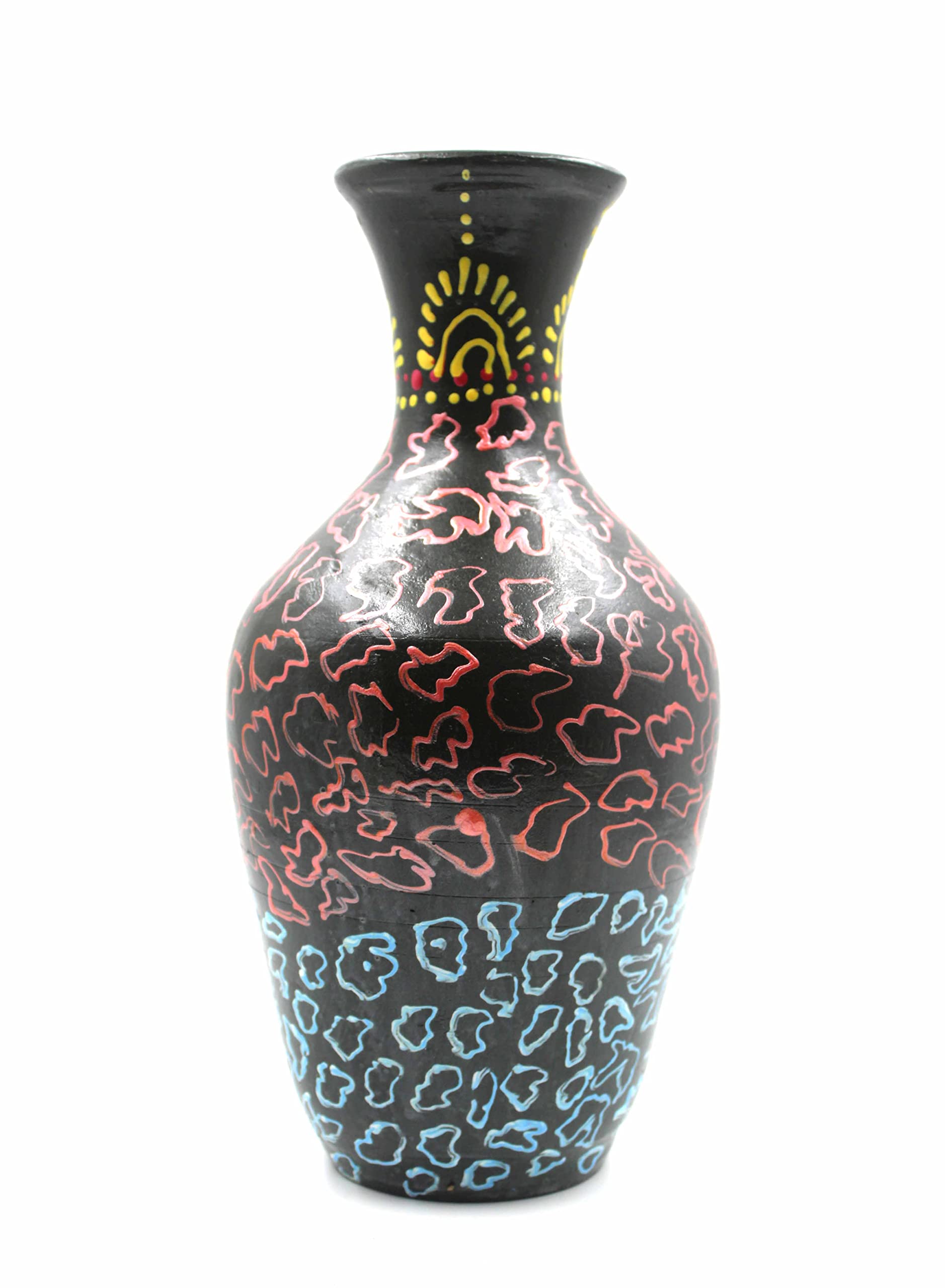 STONE WORK Present A Terracotta Multicoloured Flower Vase with Delightful Hand Crafted Design Ideal for Home Decoration Or Gifting Purpose.(HXWXD=26X15X15) cm