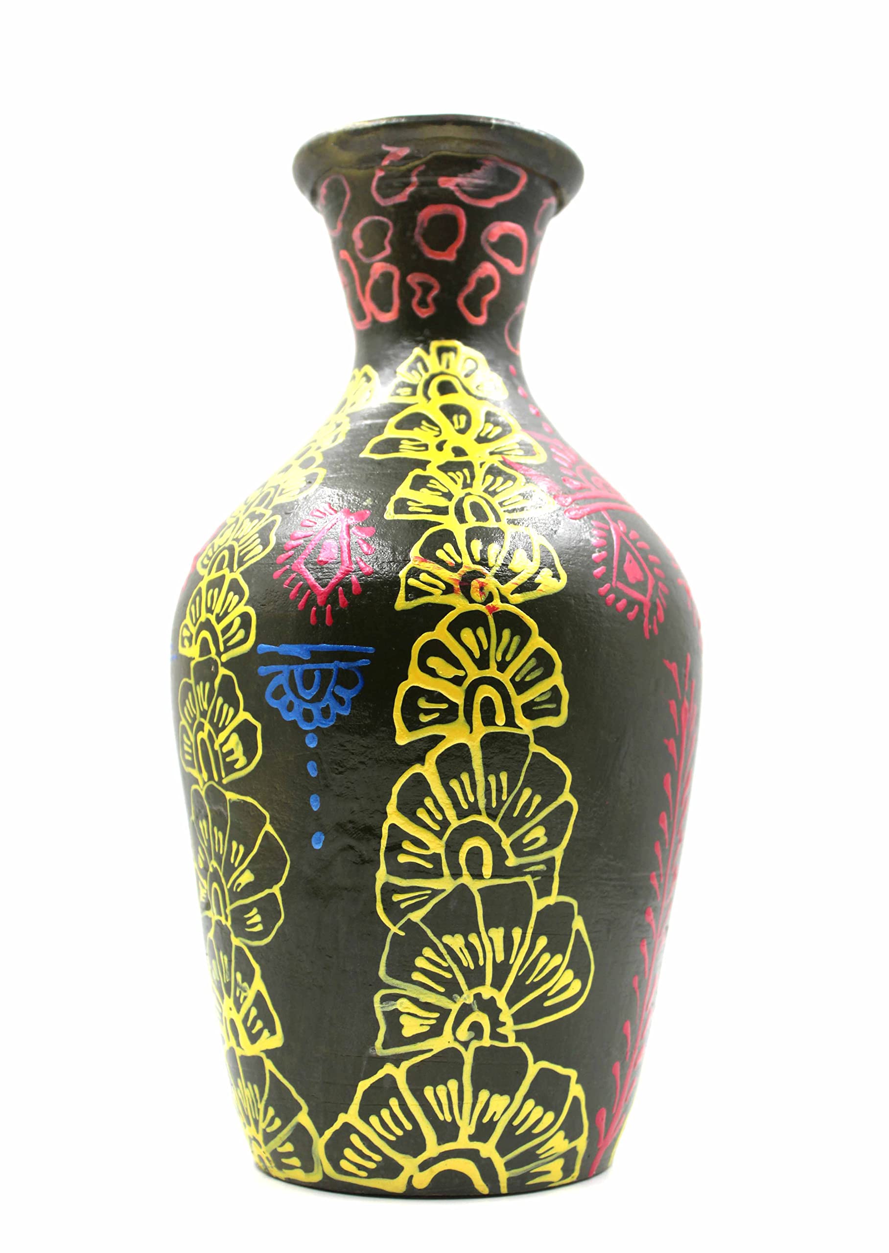 Decor your home and office with this flower pot - This flower pot is Multi colored - The Flower Vase in hand sculptured on it not only enhances the beauty of this flower pot but also makes it looks elegant and classic and giving ethnic touch to it. - This flower vase is made of terracotta and it is completely handmade.