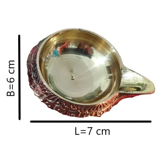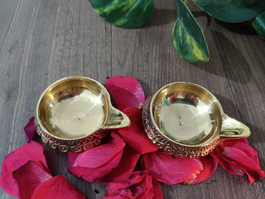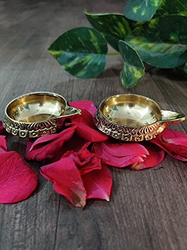 BRASS CRAFTS Brass Kuber Diya Set of 2 MD Brass Diya Oil Lamp Kuber Deepam Handcrafted Design Golden Dia for Pooja Mandir Diwali Deepawli Size 7 CM Weight 100Gram Each