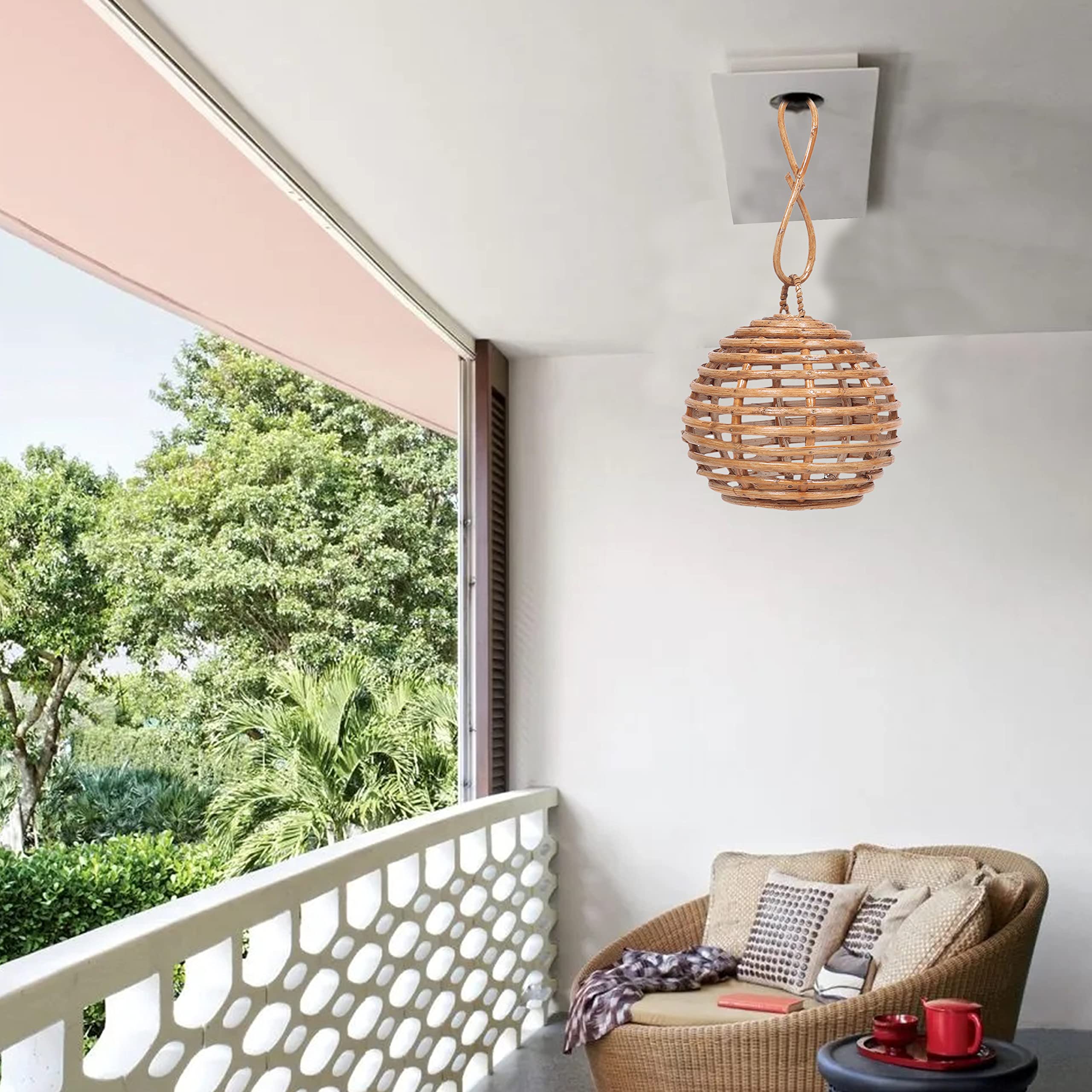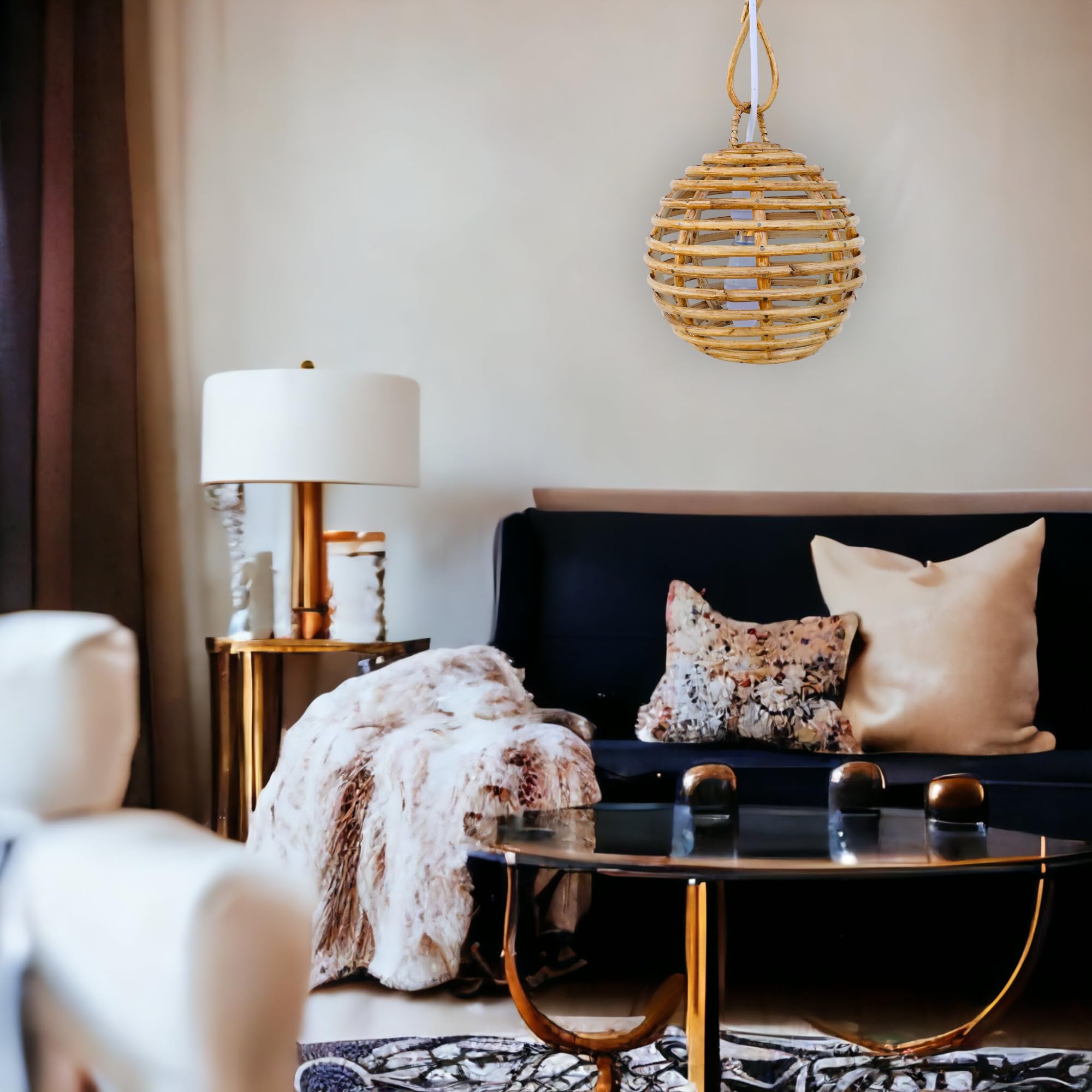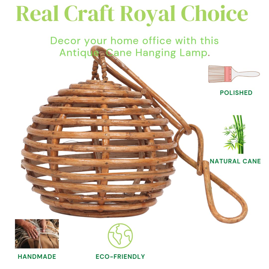 CANE & BAMBOO CRAFTS Handmade Eco-Friendly Cane Rattan Wicker Hanging Lampshade Round Cane Ceiling Light Shade Pendant Light for home office decoration Round Shape Colo- Beige
