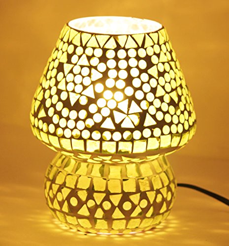 Brahmz Mosaic Glass Table Lamp is made up of semi-transparent glass beads so when you switch on the Bulb it glows and gives really pretty and glowing look! As it is handcrafted in India with Traditional skills (Made in India) it gives artful appeal to any space in your home. It adds a refined touch to your decor while it's glowing. Due to the handmade nature of these products designs and exact colour may slightly vary but loveliness comes as standard. A refreshing change from the sleek and contemporary lamps this table lamp from Brahmz breaks away from the conventions with its unique appeal and beautiful colors. Made of glass this table lamp is durable and sturdy and enhances your home dcor. Mosaic Pattern. A blend of traditional and modern this table lamp has a colorful and vibrant mosaic pattern that gives your home a magical and charming ambience. This table lamp is beautifully handcrafted with skill and creativity that make it an elegant addition to your home dcor. Material: Glass (Purely handmade items) Multi Color Glass Beads. Bulb can be used: CFL or Incandescent Bulb or LED Bulb (Bulb is not Included with the product) Brass Holder : B22 1 meter 2 Pin wire. Easy To Clean Just Whip Out With Soft Dry Cloth