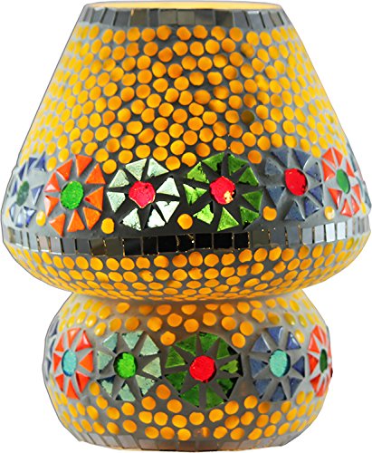 Brahmz Mosaic Glass Table Lamp is made up of semi-transparent glass beads so when you switch on the Bulb it glows and gives really pretty and glowing look! As it is handcrafted in India with Traditional skills (Made in India) it gives artful appeal to any space in your home. It adds a refined touch to your decor while it's glowing. Due to the handmade nature of these products designs and exact colour may slightly vary but loveliness comes as standard. A refreshing change from the sleek and contemporary lamps this table lamp from Brahmz breaks away from the conventions with its unique appeal and beautiful colors. Made of glass this table lamp is durable and sturdy and enhances your home dcor. Mosaic Pattern. A blend of traditional and modern this table lamp has a colorful and vibrant mosaic pattern that gives your home a magical and charming ambience. This table lamp is beautifully handcrafted with skill and creativity that make it an elegant addition to your home dcor. Material: Glass (Purely handmade items) Multi Color Glass Beads. Bulb can be used: CFL or Incandescent Bulb or LED Bulb (Bulb is not Included with the product) Brass Holder : B22 1 meter 2 Pin wire. Easy To Clean Just Whip Out With Soft Dry Cloth