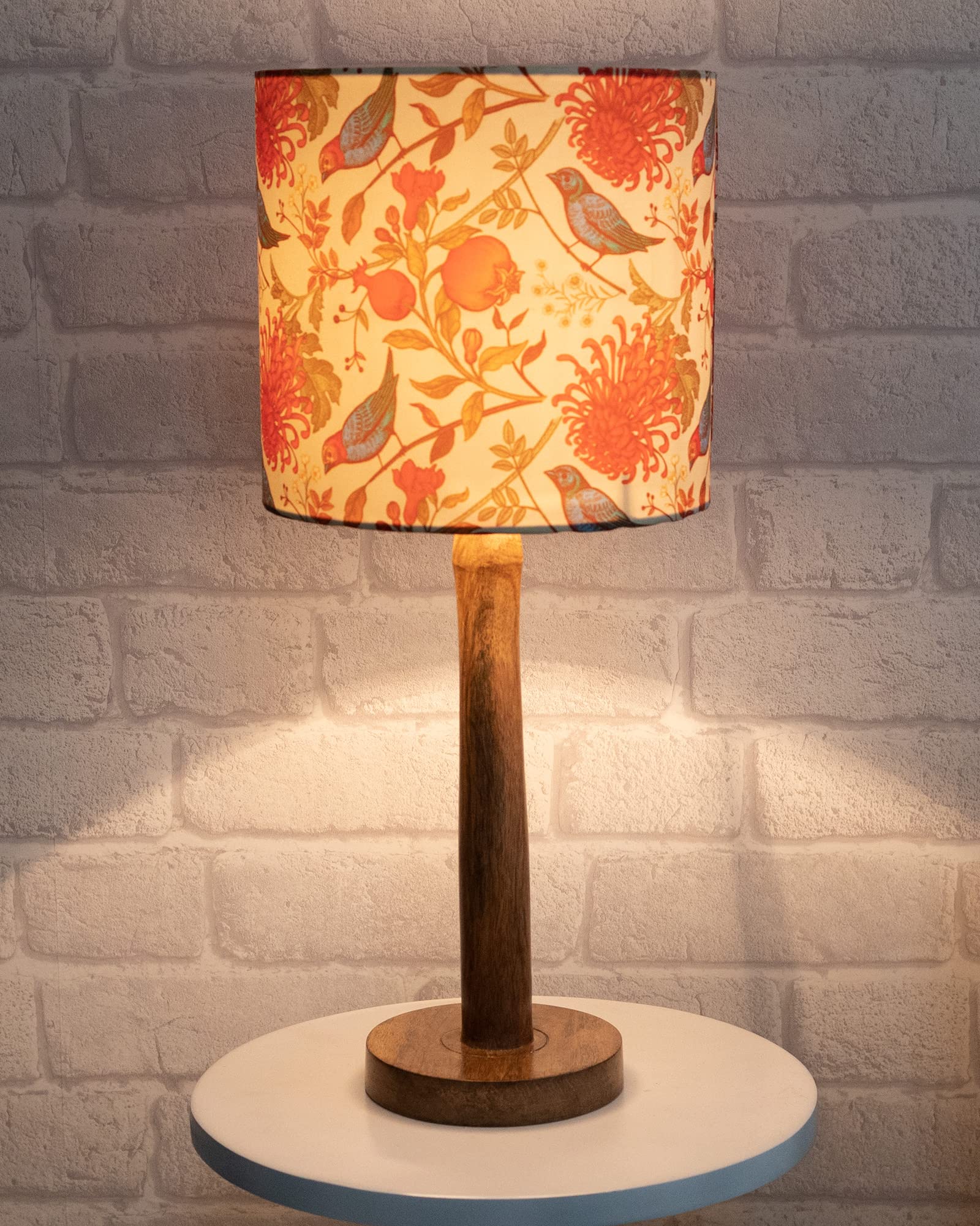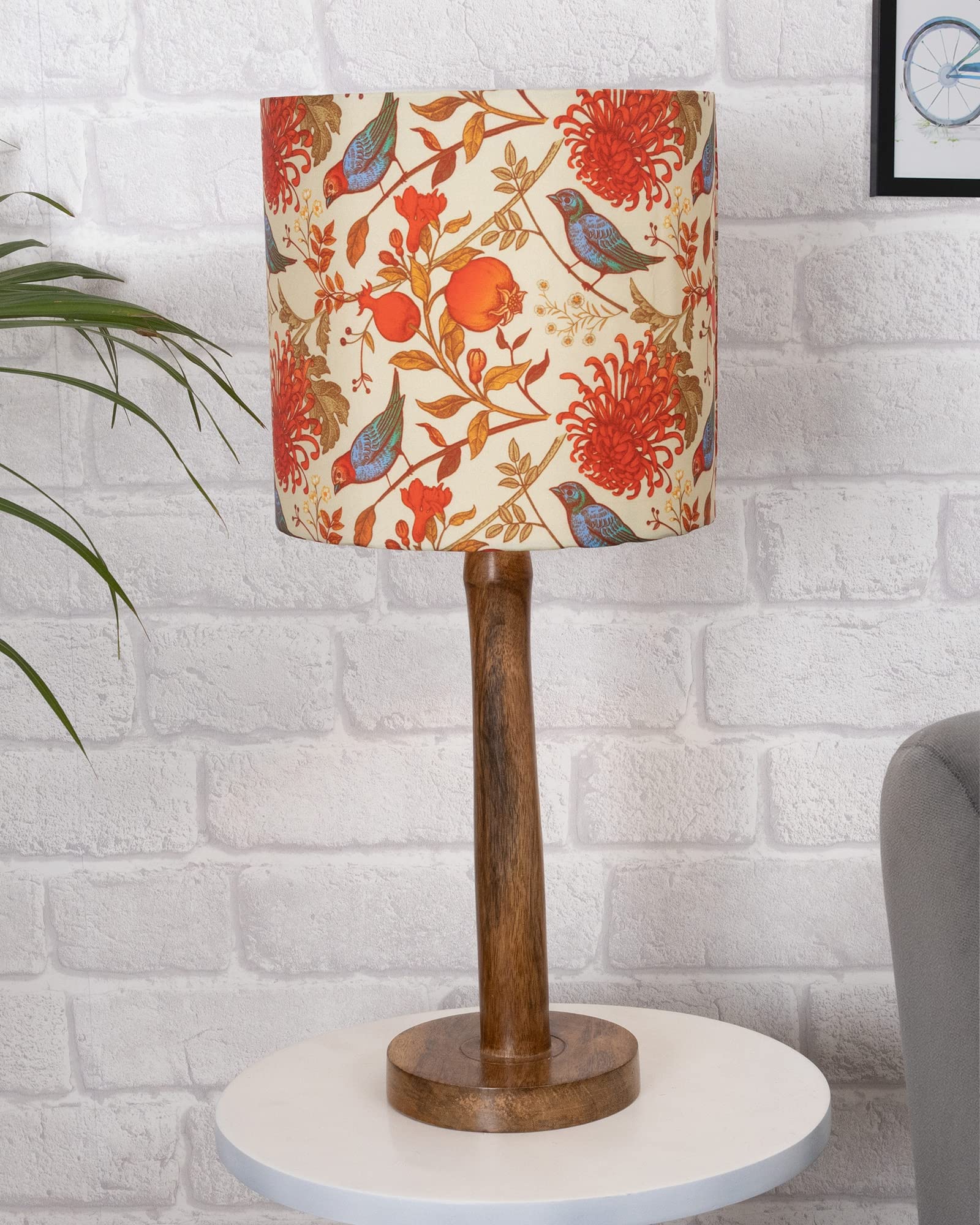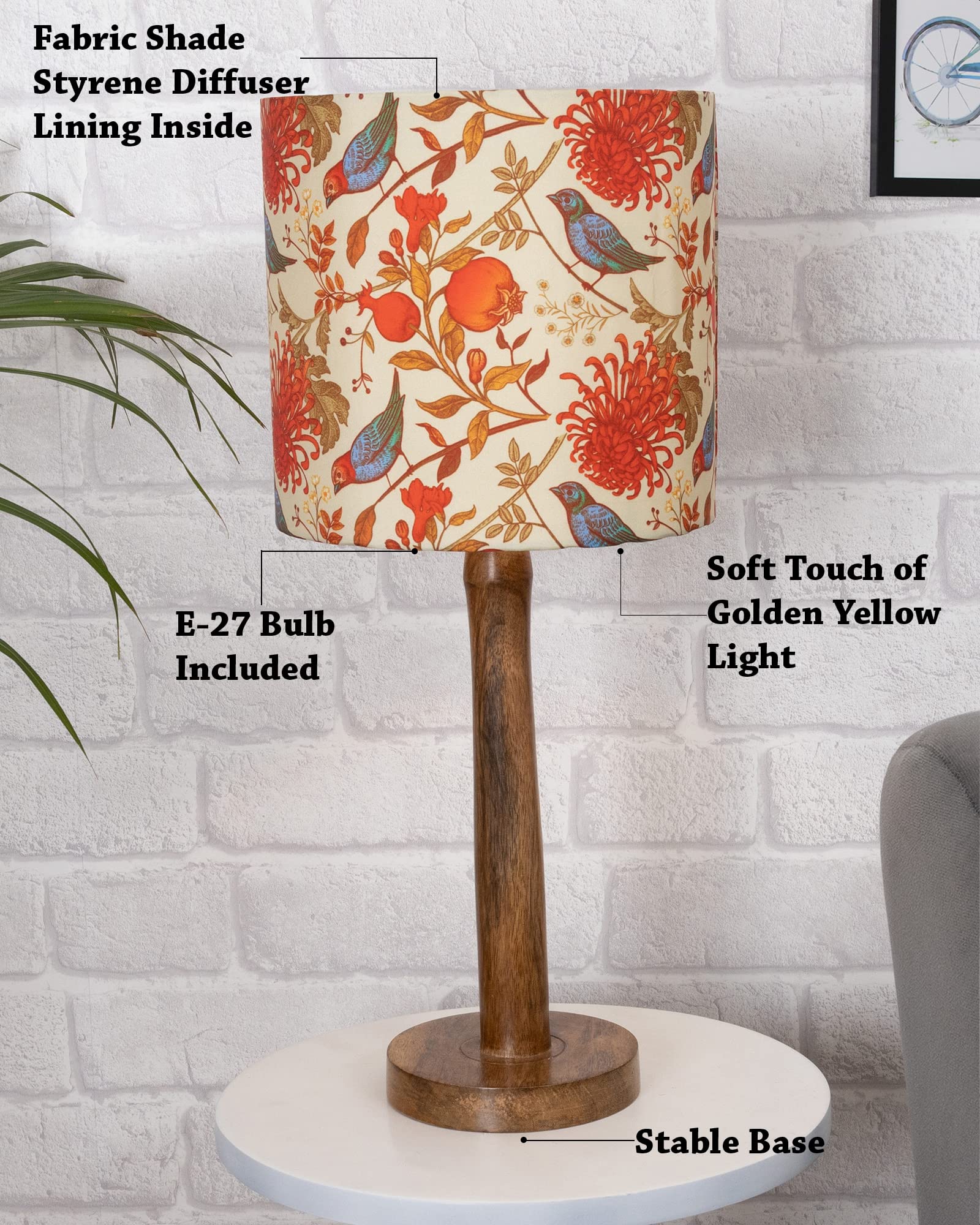 Homesake Modern Stick Table Lamp Wooden Base Modern Fabric Lampshade for Home Office Cafe Restaurant Nordic (Birds)