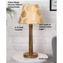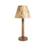 Designed with the traditional classic style this captivating unique table lamp is a great lighting fixture to add a beautiful and natural element to any room. A sturdy wood base is topped with a shade and it casts a warm and soothing light perfect for placing on your nightstand or side table beside sofa and bed. The round hardback shade is a crisp beige linen fabric with light slubbing and a crude burlap wrap around the center. It is made of durable wood and comes with a solid base that ensures stability. Disclaimer:: while we strive for perfection there may be instances where product color may vary slightly due to photographic effects or your monitor settings. Additionally please note that the props used are not for sale and the styling is only representative
