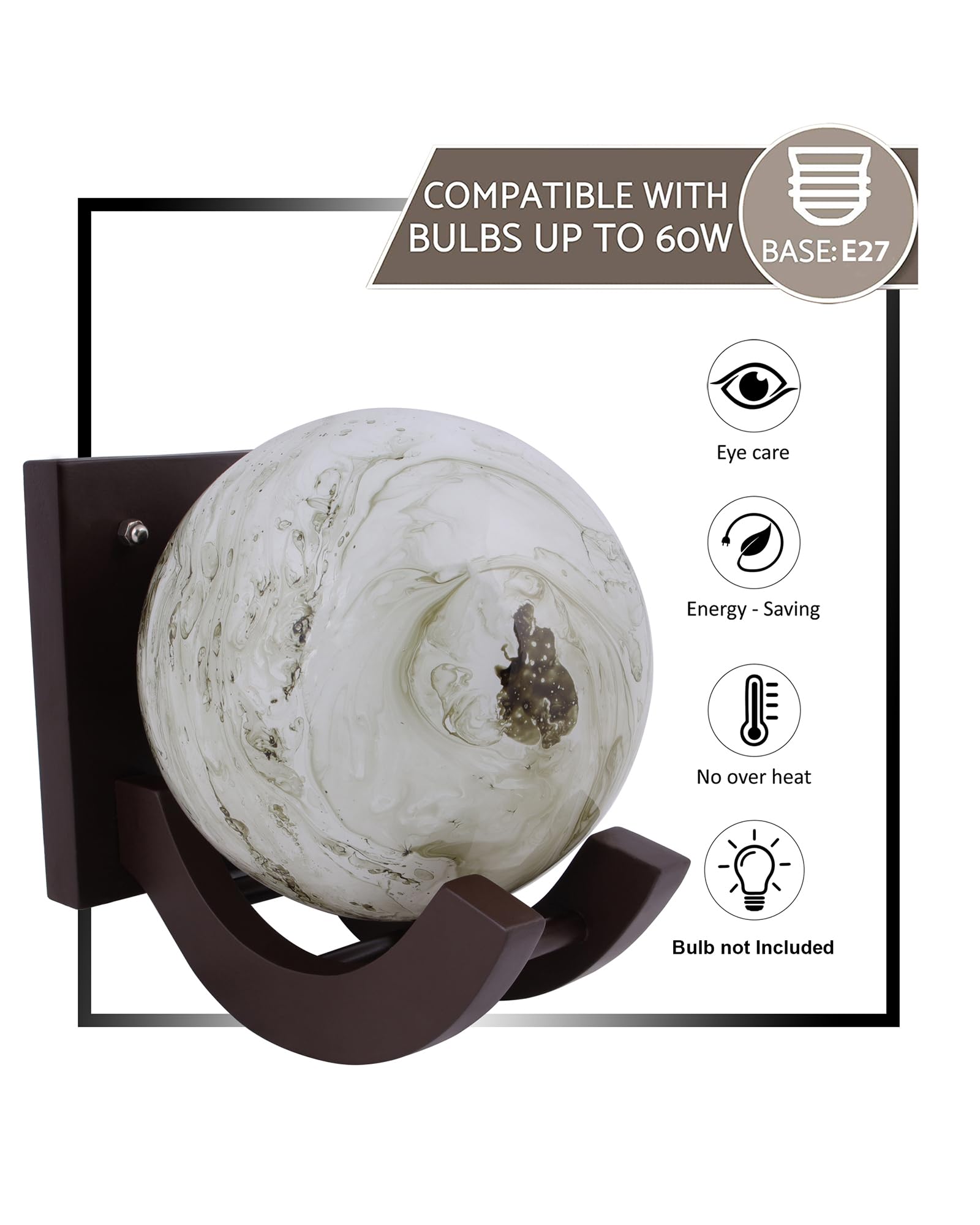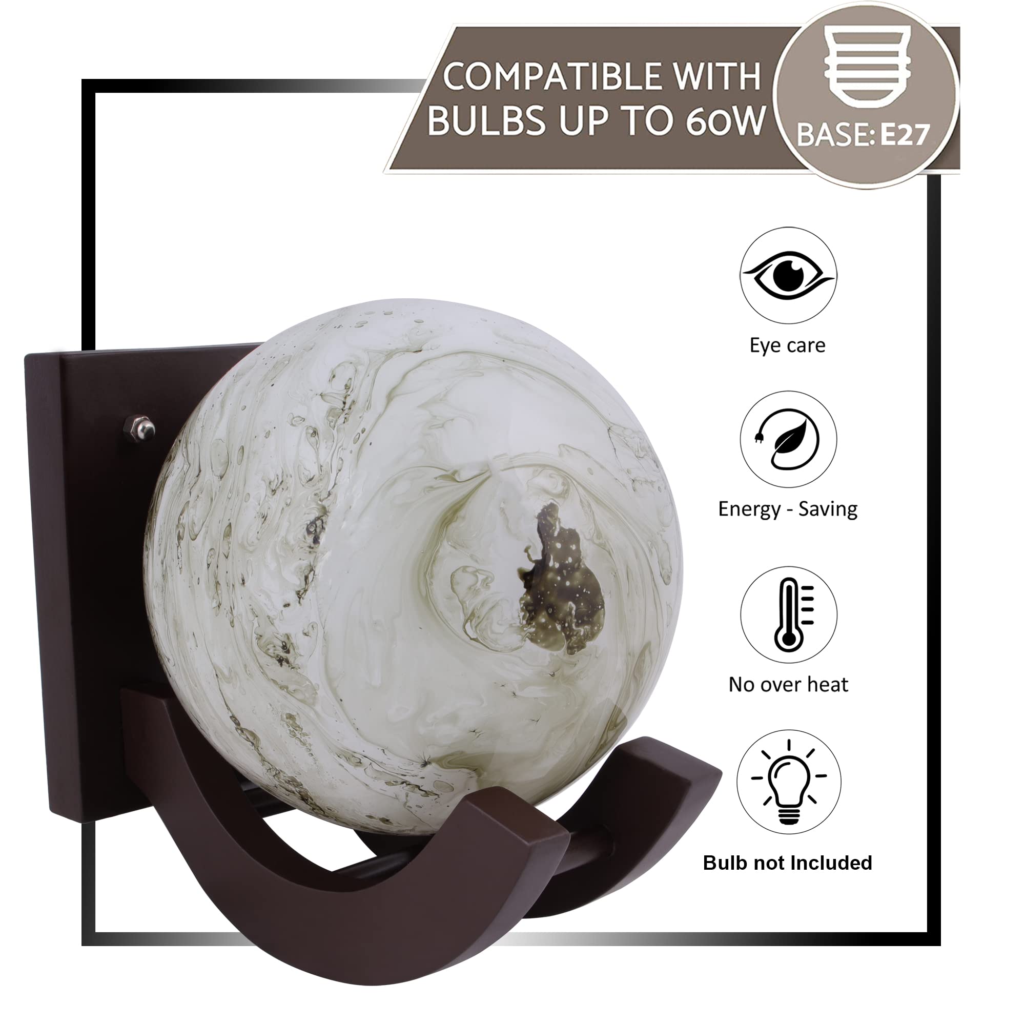 This Amazing Decorative Wall Light From The House Of Homesake Is A Useful Addition To Your Home Decor Arsenal. Crafted From High Quality Glass And Wood Material This Wall Lamp Is Long Lasting And Energy Efficient. This Wall Sconce Has A Light Weight Design And Is More Energy Efficient. This simple and luxurious wooden wall scone lamp with marble glass shadenot only create beautiful lighting effects but also bring more vitality to your life ideal for home decoration and can be kept in the bedroom drawing room living room lobby hall. It can also be great for theme decorations restaurants bar room night lamp wall lamp that will impress anyone with its modern design and eye-catching color.
