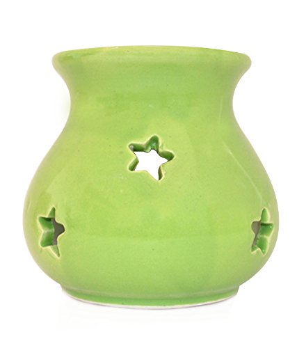 "Aroma lamps are used to diffuse essential oils in Aromatherapy or just in order to feel good. These Candle driven lamps use a small candle under a bowl to vaporize a mixture of water and oil. This long shaped oil diffuser has beautiful cutting on all sides and as soon as you burn tea light at the bottom light comes out of it giving an amazing effect to this lamp. Also the upper section to hold water & essential oil is quite deep to hold sufficient water in one go itself. Clean it with soft & dry cotton cloth after wash. Suggested aroma oils for good positive feelings are lavender lemongrass saffron rose and green tea rest you can select from a wide variety of Kriti’s aromatic oils. Always use kritis tea light with burning time of 4.5 or 9 hours of your choice for best effect."
