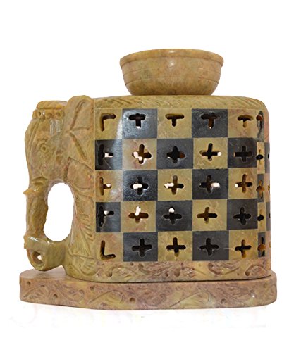 Aroma lamps are used to diffuse essential oils in Aromatherapy or just in order to feel good. These Candle driven lamps use a small candle under a bowl to vaporize a mixture of water and oil. This round shaped oil diffuser has beautiful elephants cutting on all sides and as soon as you burn tea light at the bottom light comes out of it giving an amazing effect to this lamp. Also the upper section to hold water & essential oil is quite deep to hold sufficient water in one go itself. Clean it with soft & dry cotton cloth after wash. Suggested aroma oils for good positive feelings are lavender lemongrass saffron rose and green tea rest you can select from a wide variety of Kriti’s aromatic oils. Always use kritis tea light with burning time of 4.5 or 9 hours of your choice for best effect."