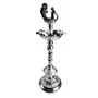 WOOD CARVING WORK WHITE METAL Finish DIYA: Peacock-Topped TALL KASHI SAMAI KUTHU VILAKKU SAPTA (07-Notched) DEEPAM/ JYOTI/ LAMP with Stand (11 Inches: Please RE-ASSEMBLE on receipt - as per photo instructions)