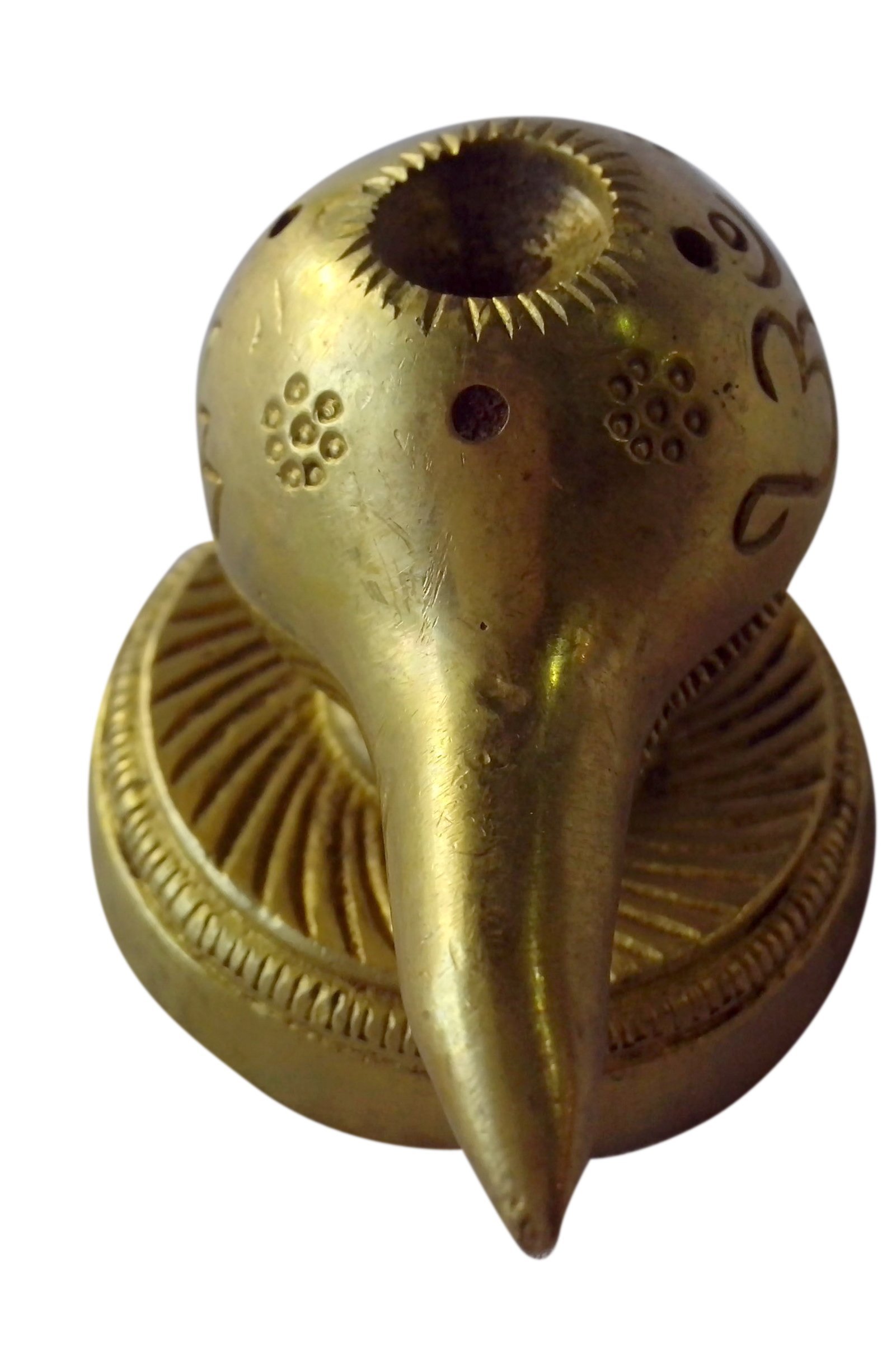 BHARAT HAAT Brass Agarbatti Stand Incense Holder with shankh Conch Design Collectible Showpiece for Puja Handicraft Small Art (2.9 x 2 x 2.9 Inch Yellow)