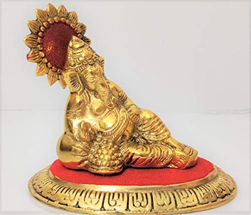 BRASS CRAFTS Metal Sinhaasan Ganesha (L*B*H - 18cm*12cm*14cm) Ganesha Idol for Gifting Ganesh Showpiece Figurine for Mandir Temple Home Decor and Office Study Table Car Made in India